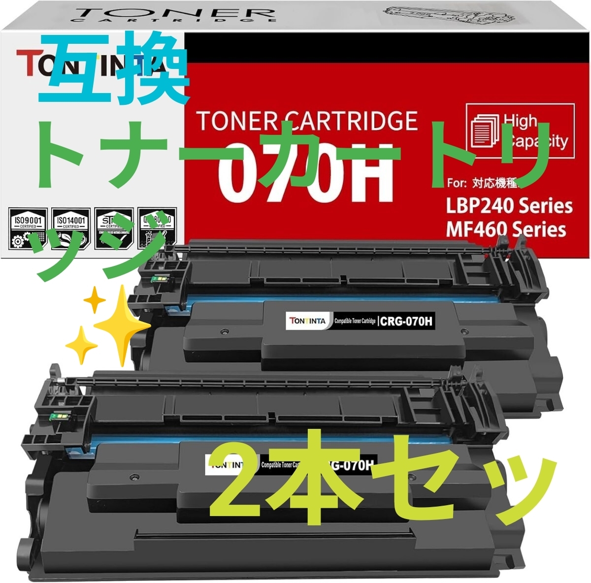 2.商品内容: 070H CRG-070H CRG070H 互換トナーカートリッジ 2本 ブラック。 当社の 070H CRG-070H CRG070H 互換トナー カートリッジは、オリジナル Canon キヤノン 070 CRG-070 CRG 070 070H CRG-070H CRG070Hトナー カートリッジのもう 1 つの選択です。