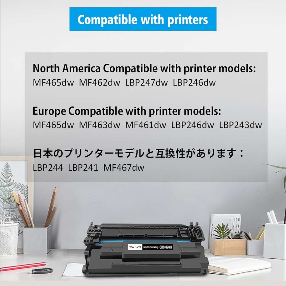 3.対応プリンター: 対応機種キヤノンCanon Satera MF467 MF467dw LBP241 LBP244 プリンター。 ページ収量: 大容量、10200 ページ、ブラック、カバレッジ 5%、A4 用紙、レター。 (ISO/IEC規格)。コード:5640C003