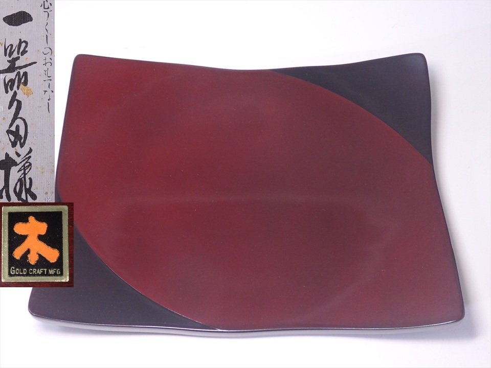 ★状態良好!木製【角が立ちあがった盆】30.5×24.7×高さ3.8cm 菓子器 茶道具 茶器 和食器 お料理の盛り器にも!