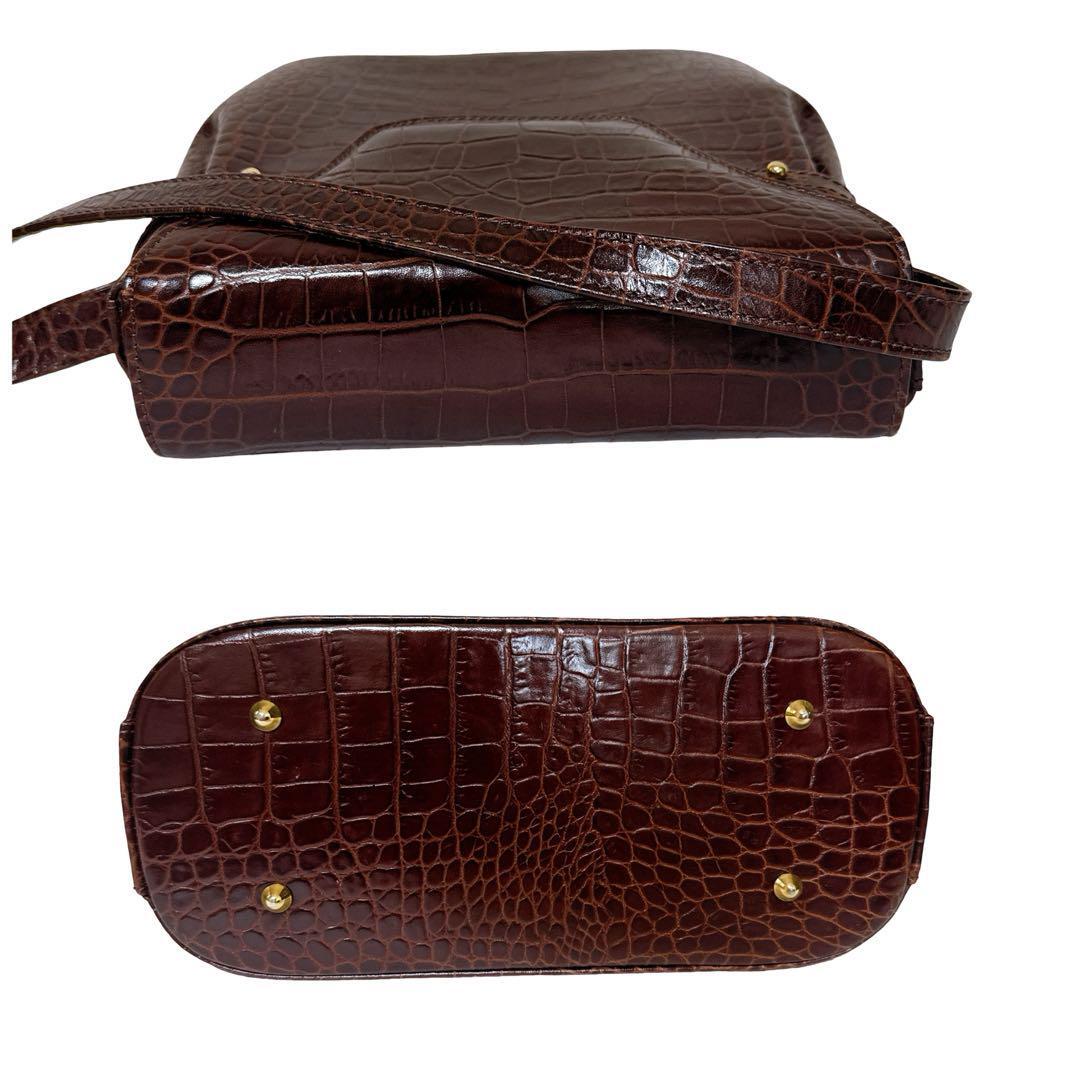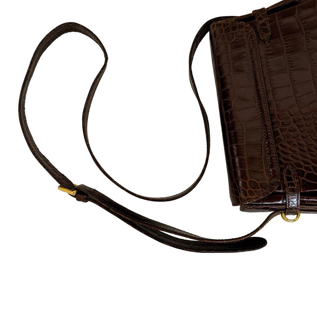 バリー クロコダイル型押しレザー クロスボディ ショルダーバッグ ブラウン レディース