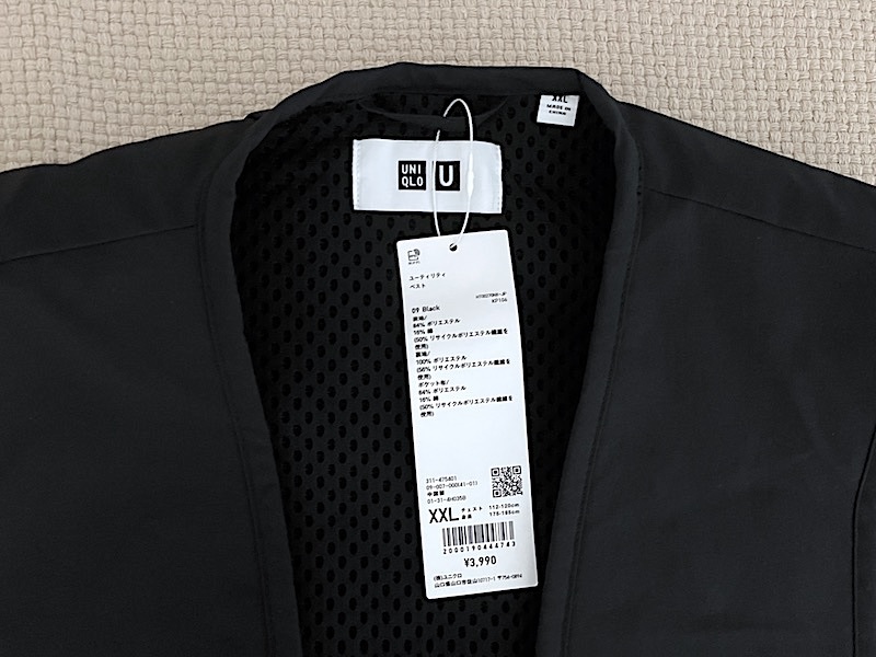 即決 未使用 紙タグ付 XXL サイズ ユニクロ UNIQLO ユーティリティベスト 黒 BLACK