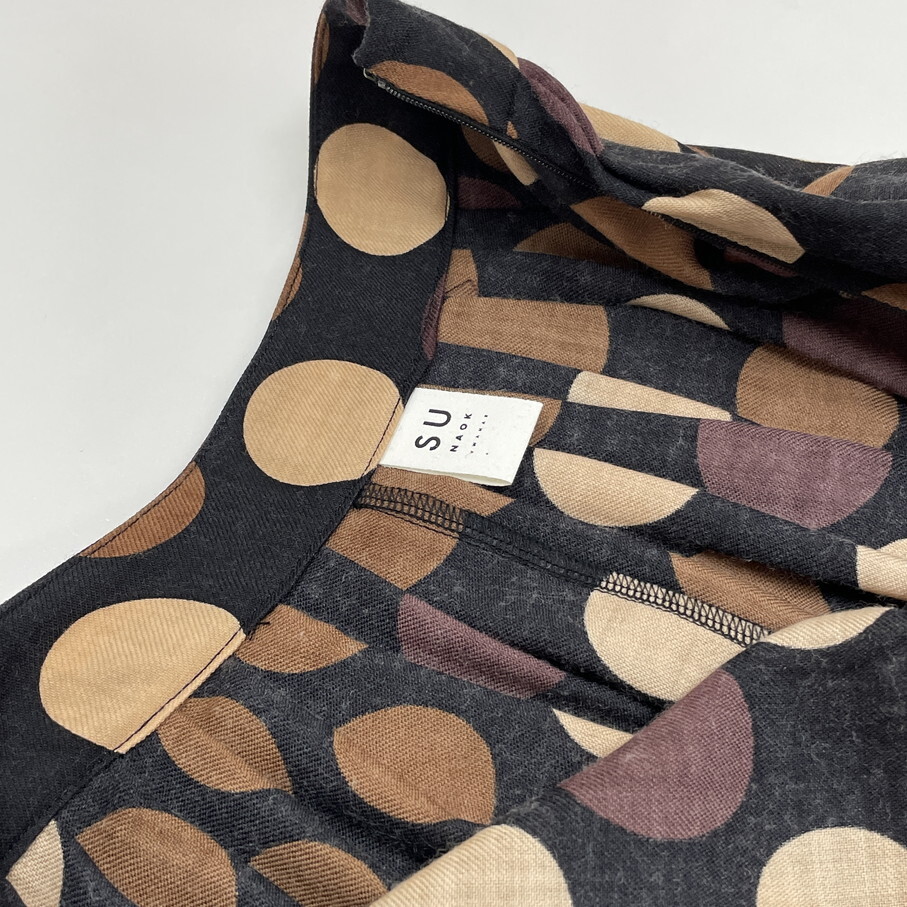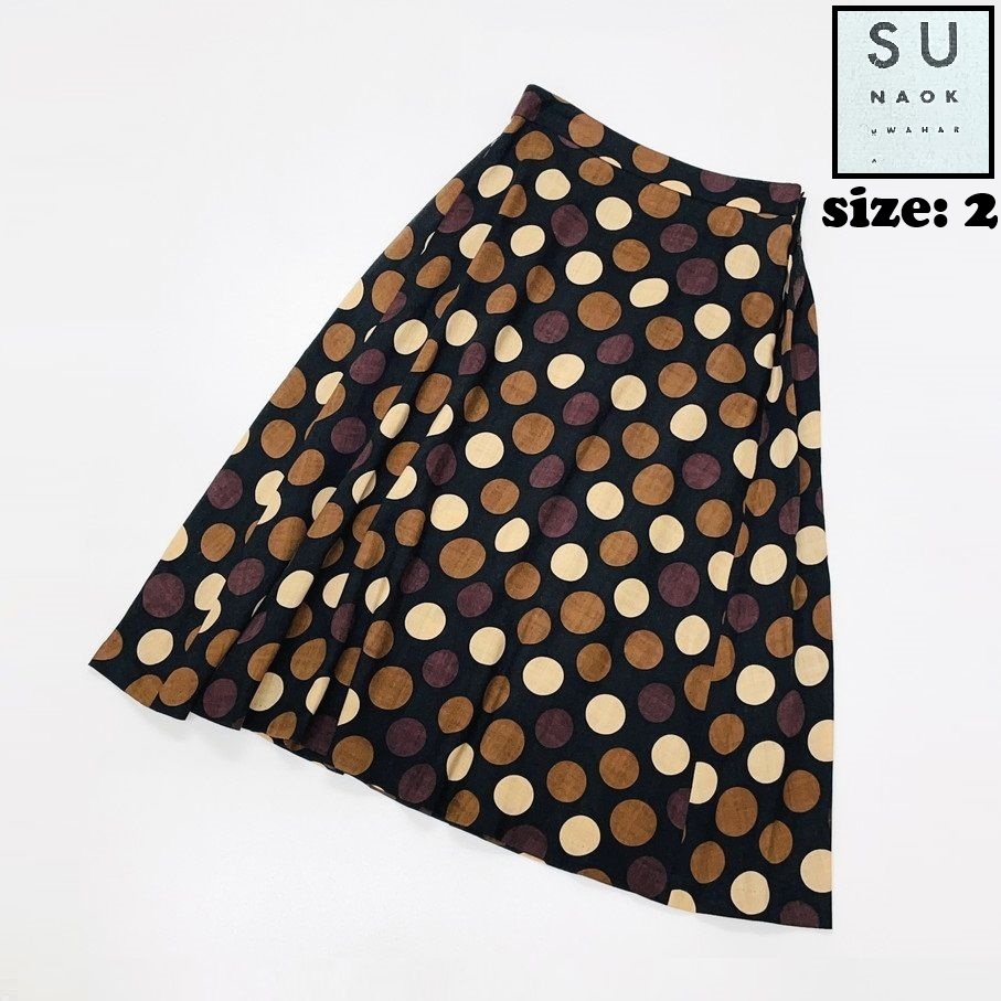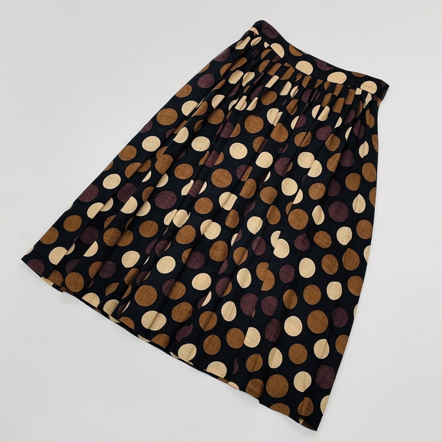 SUNAO KUWAHARA /2/ ブラック×ブラウン ロングスカート レディース 日本製 ドット柄 水玉 生地ウール マツオ センソユニコ スナオクワハラ