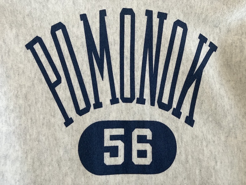 胸にはカレッジ系をモチーフにした大きめの染み込みプリントが施されてされている人気の高いモデルです