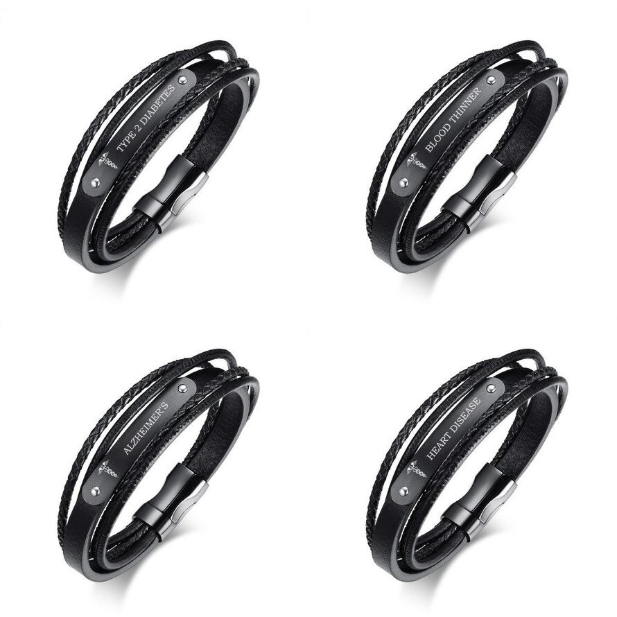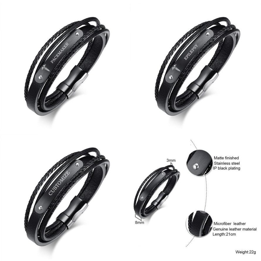 ブラック レザー ブレスレット メンズ エマージェンシー 刻印 アイス メディカル 8.3
