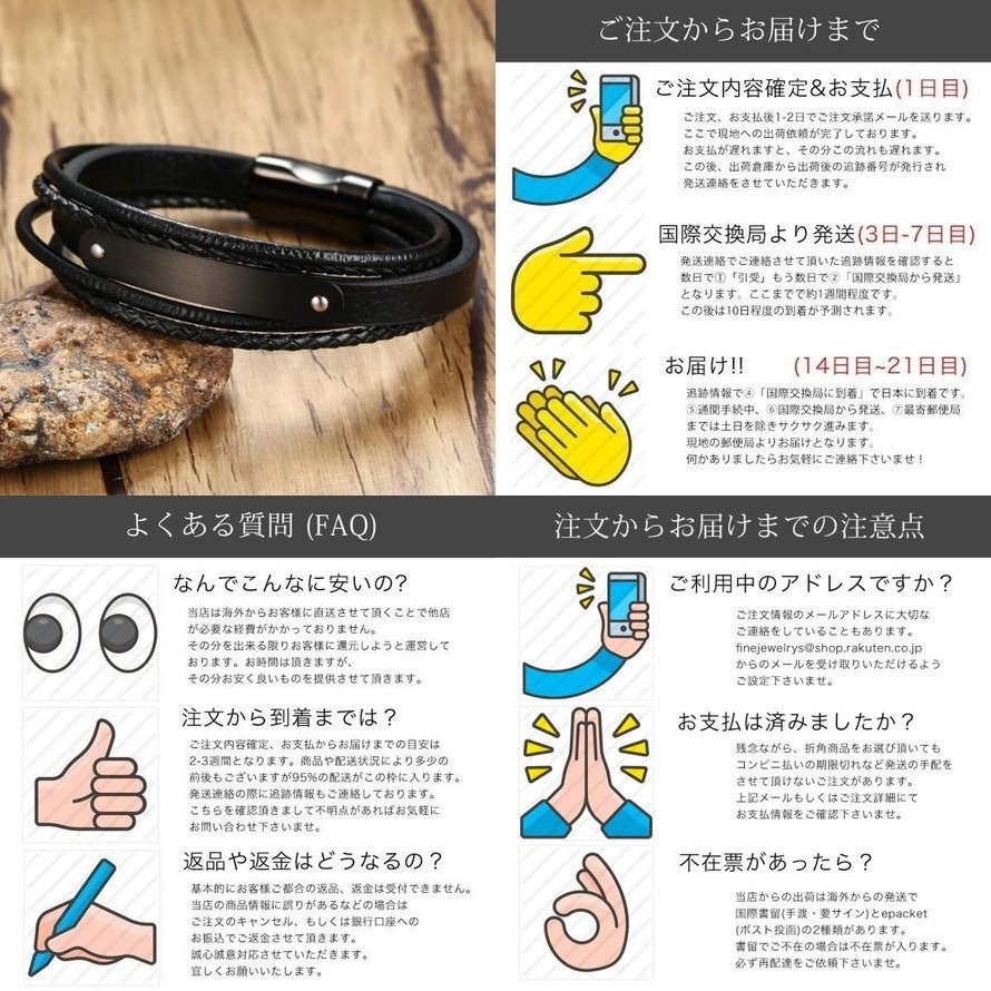 | <font size=2>商品や配送についてご不明な点がございましたら、お気軽にお問い合わせください。精一杯回答させていただきます! バリエーションの選択は購入画面で選択頂きますがデザインの選択がある場合は上記画像からデザインをお選びくださいませ。商品ページにて選択肢をご用意出来ていない商品についてはご購入いただいた後、確認メールにてバリエーションの確認をさせていただきますので、ご回答くださいませ。または事前にお問い合わせいただければ、都度商品ページを更新させていただきます。</font> |