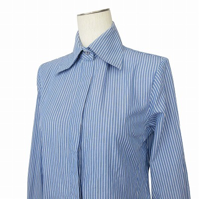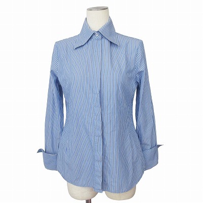 ナラカミーチェ NARA CAMICIE シャツ ブラウス ストライプ 長袖 比翼 1 青 レディース