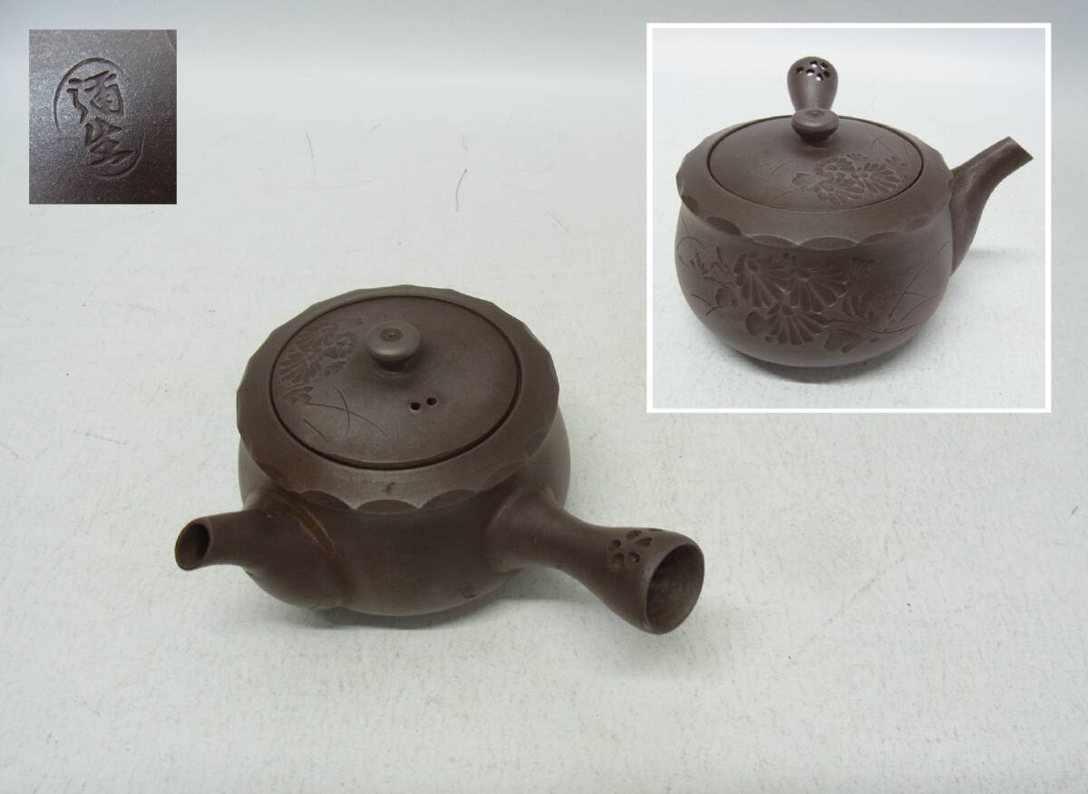 印有☆萬古焼 小ぶり 急須 透かし 桜 菊図 菊 煎茶道具 茶道具 茶 日本茶 和食器 萬古 紫泥 60 | |||