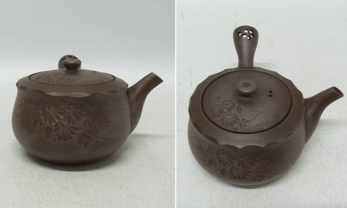 印有☆萬古焼 小ぶり 急須 透かし 桜 菊図 菊 煎茶道具 茶道具 茶 日本茶 和食器 萬古 紫泥 60 | |||