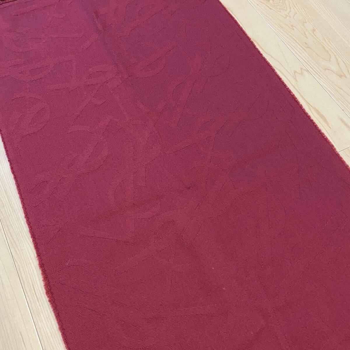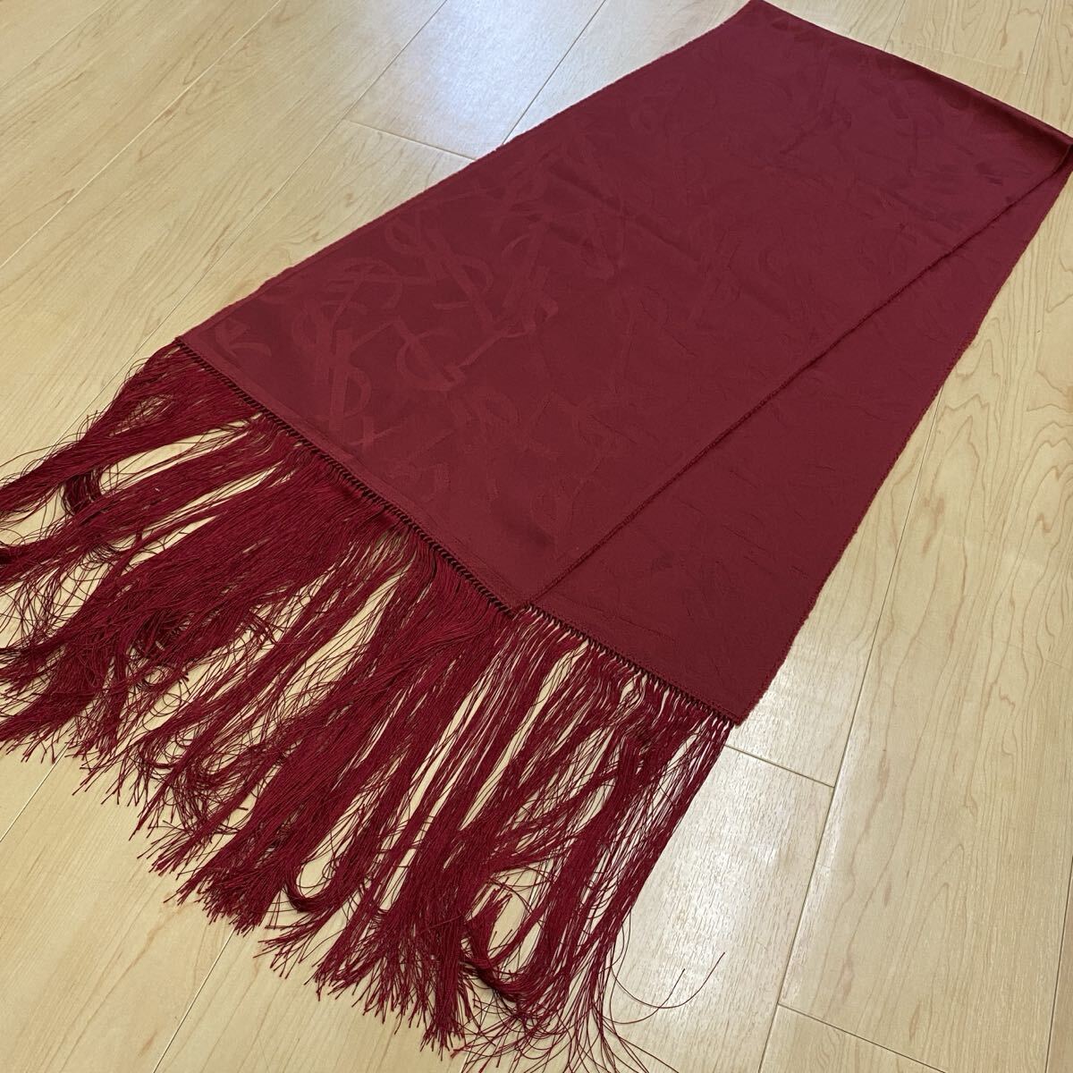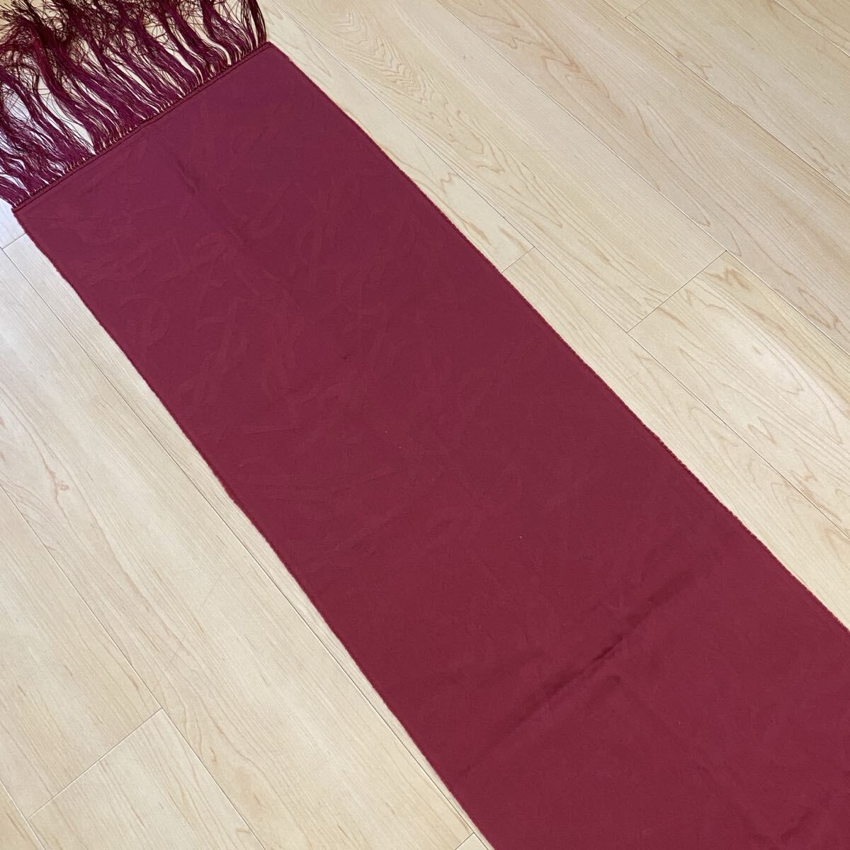 Yves Saint Laurent イブサンローラン マフラー レッド フリンジ付 ウール100% ロゴ織 no.44