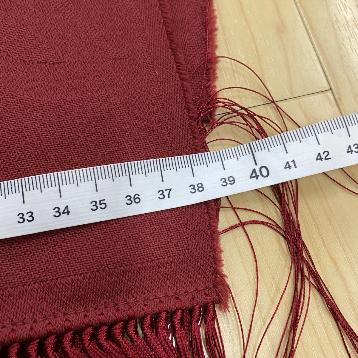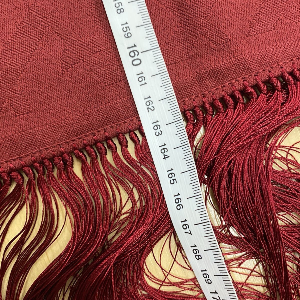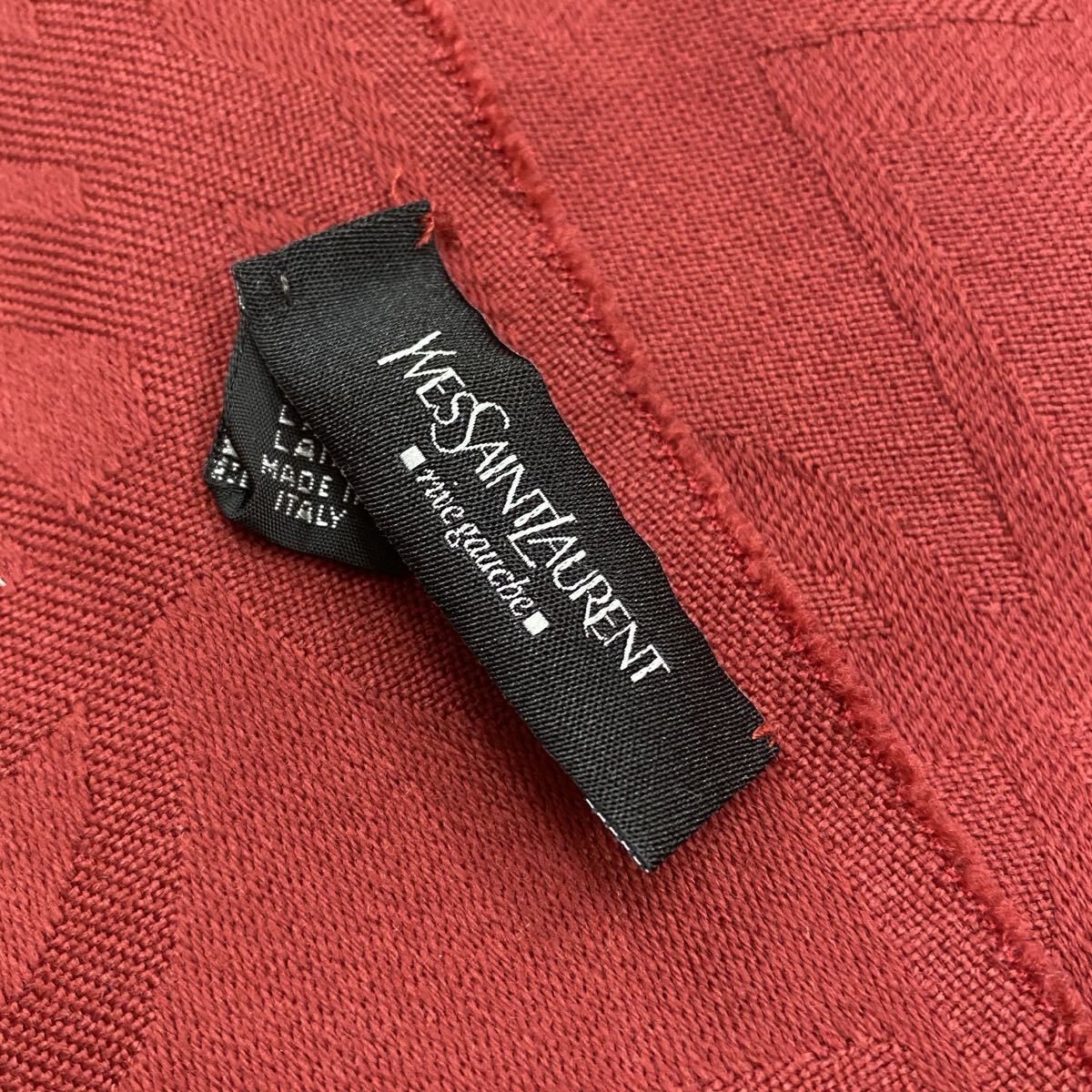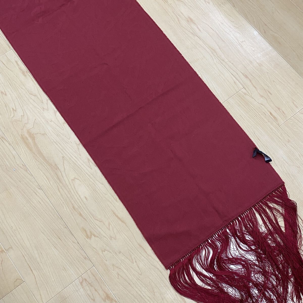 Yves Saint Laurent イブサンローラン マフラー レッド フリンジ付 ウール100% ロゴ織 no.44