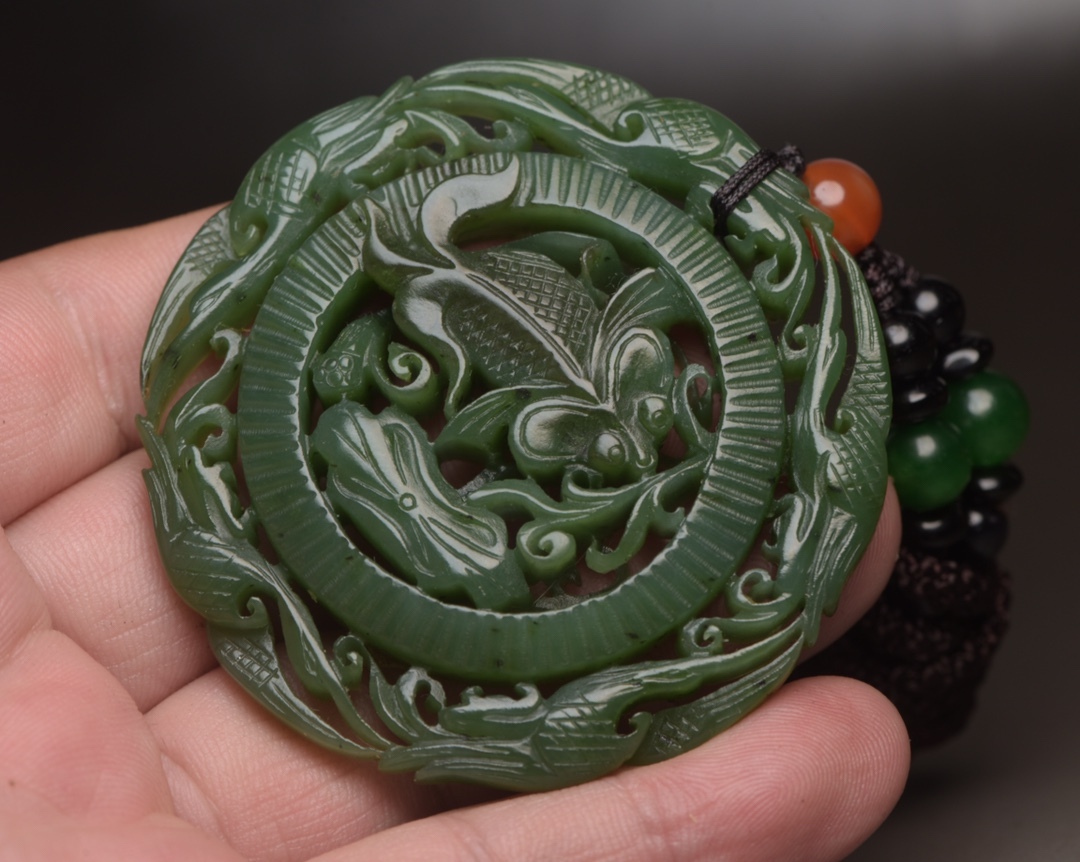 唐物 清 玉彫 和田玉 魚の札 玉質温潤細膩 沁色自然 包漿一流 極細工 中国古玩 骨董品 古美味 D68