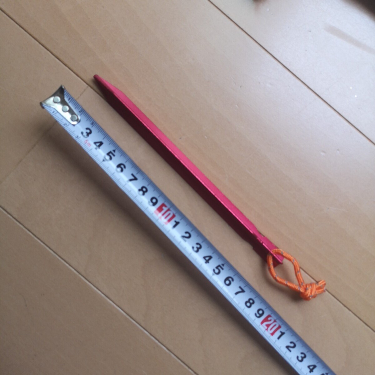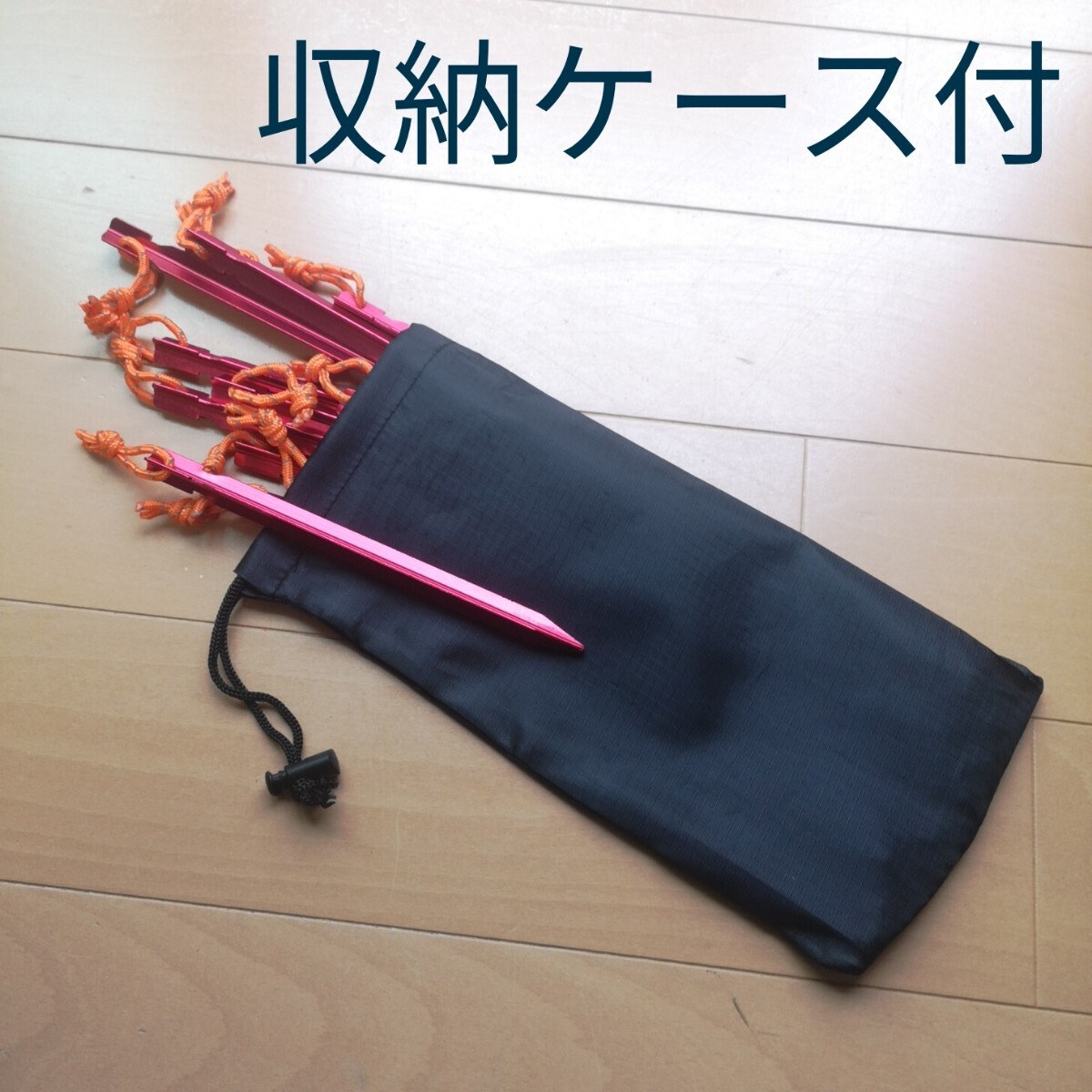 ジュラルミン製ペグ 20本(18cm Y型 ロープ付) 収納ケース付/赤レッド 軽量 アルミ テント タープ キャンプ アウトドア 目印 ハンマー