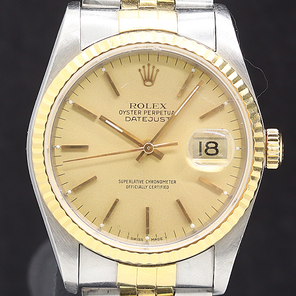 1円 稼働 ロレックス デイトジャスト 16233 L276414 AT/自動巻 ゴールド文字盤 メンズ腕時計 3294170 8TLT SMZ