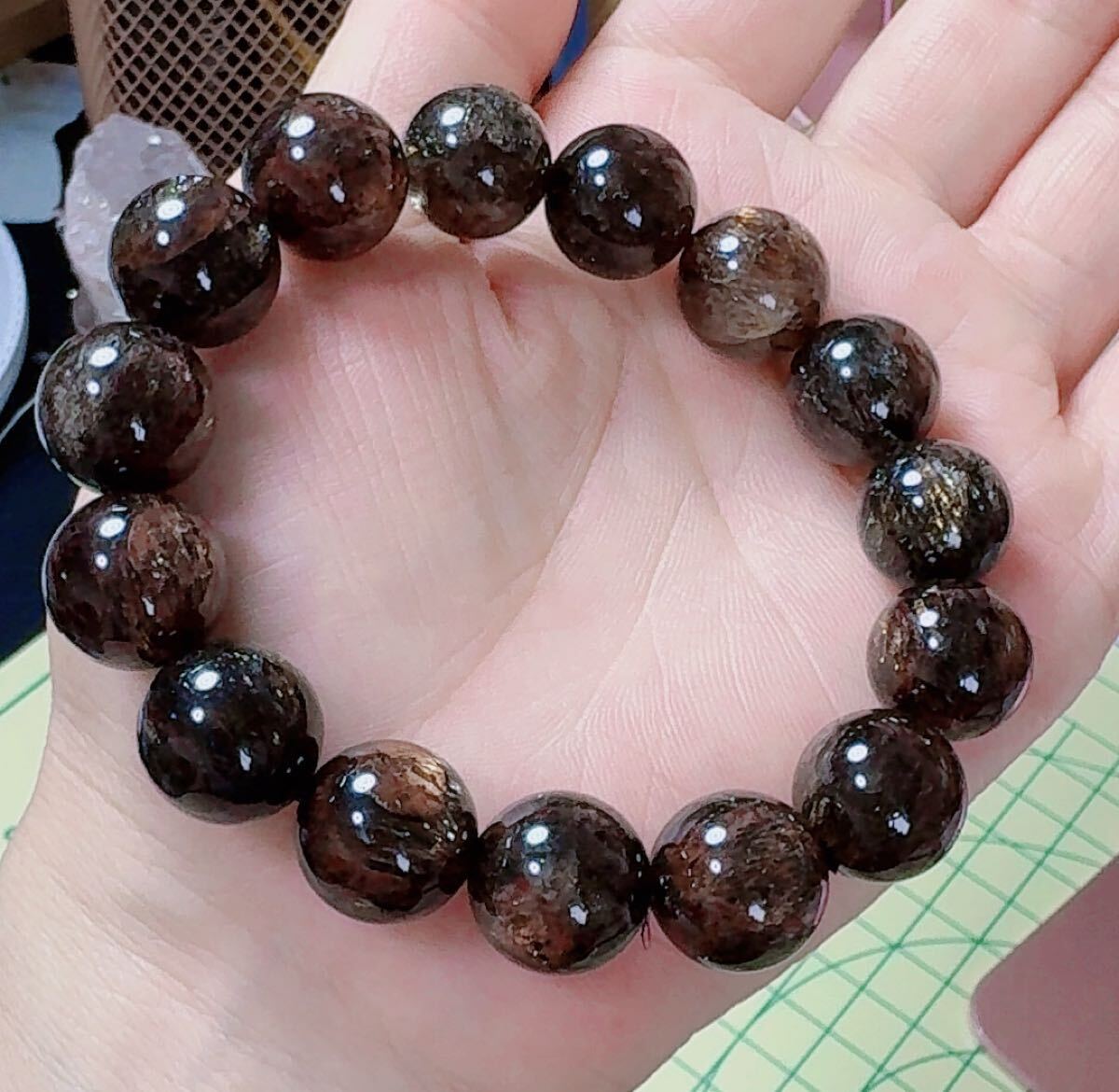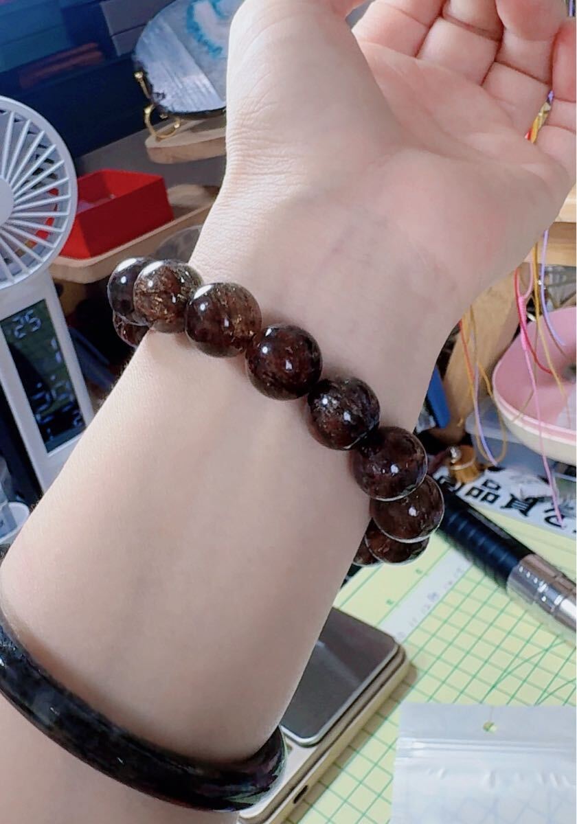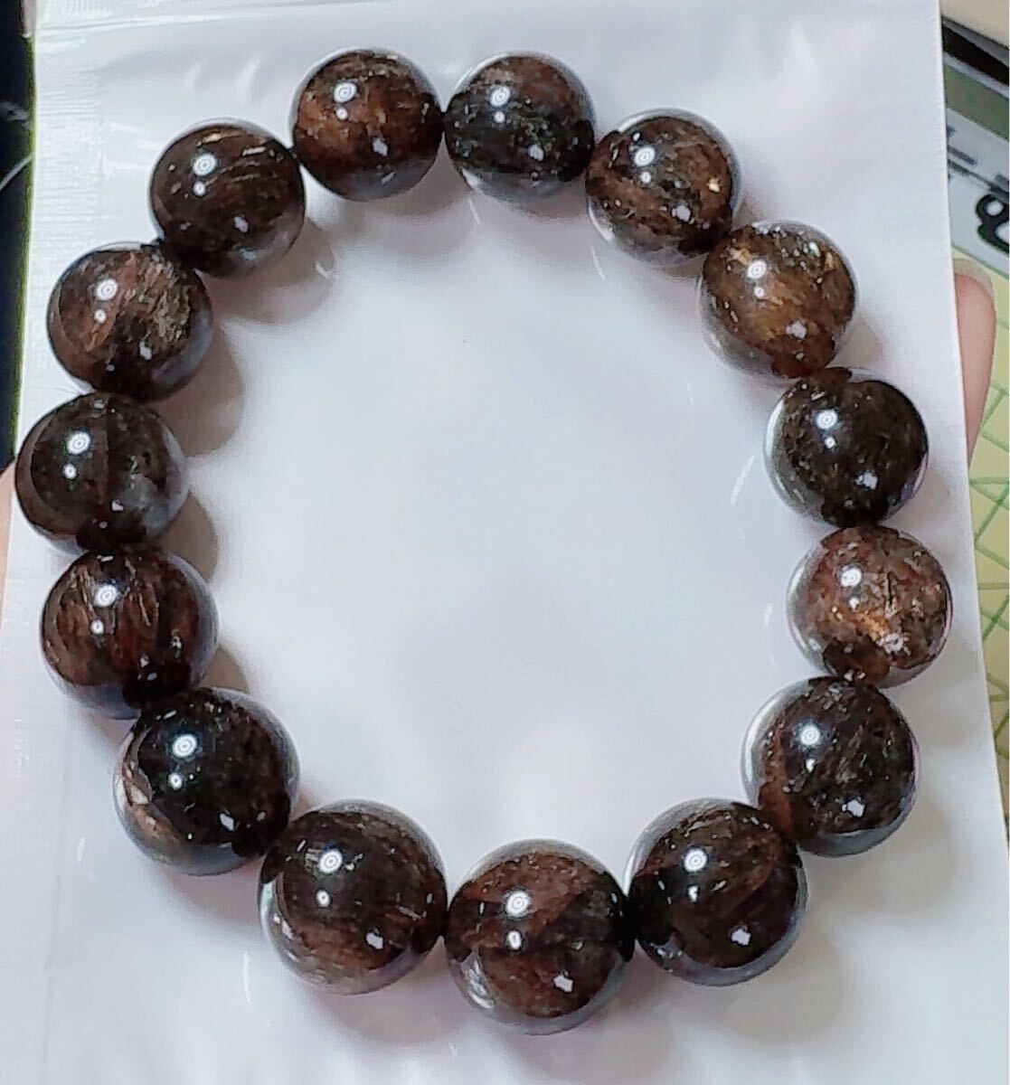 AAAAA 天然無処理 本水晶保証 天然黒金超七ブレスレット 開運 金運 魔除け 浄化済み パワーストーン 海外鑑定書付き