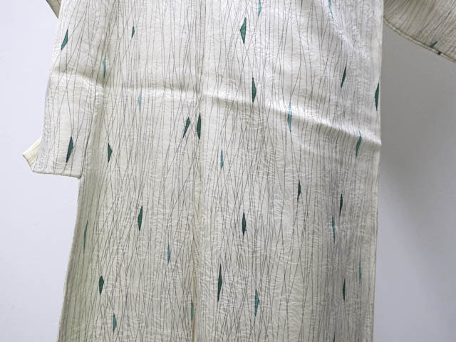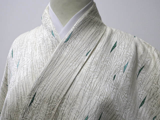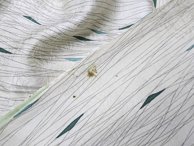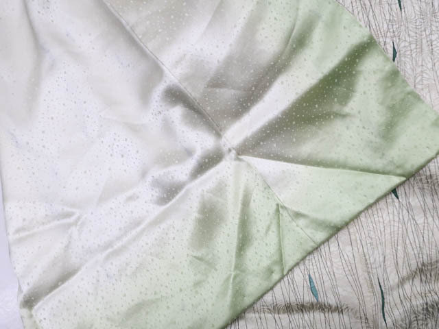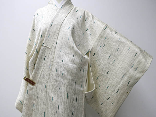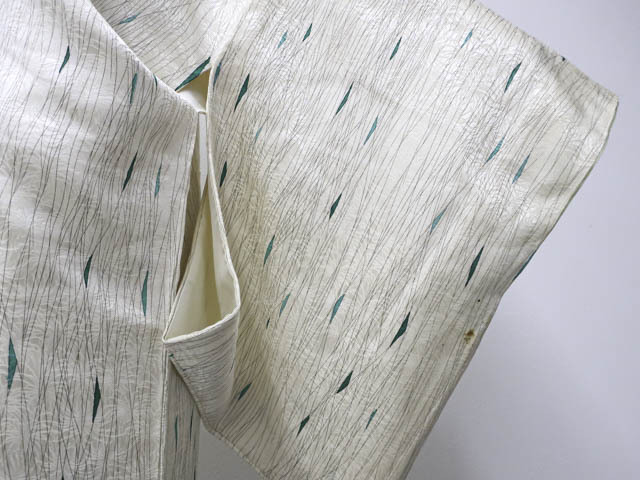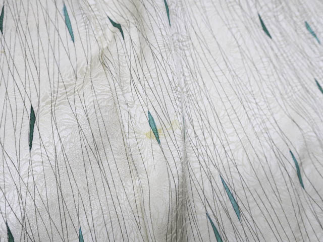 リサイクル商品のため、所々シミ汚れがございますが着用可能なお品です。 地色はアイボリー です。 1枚目の画像が近いお色かと思われます。 素材は正絹です。 |