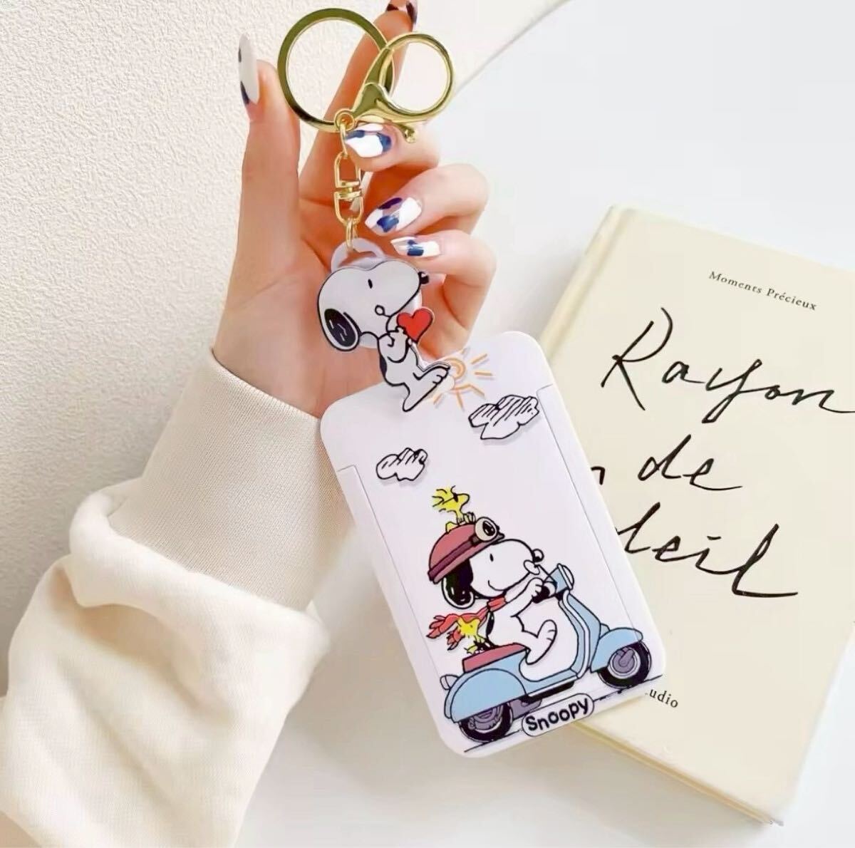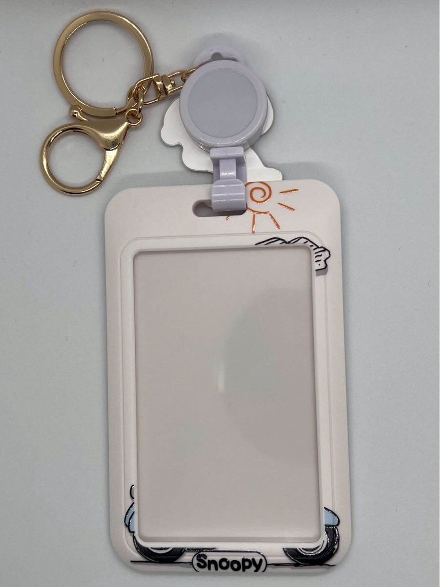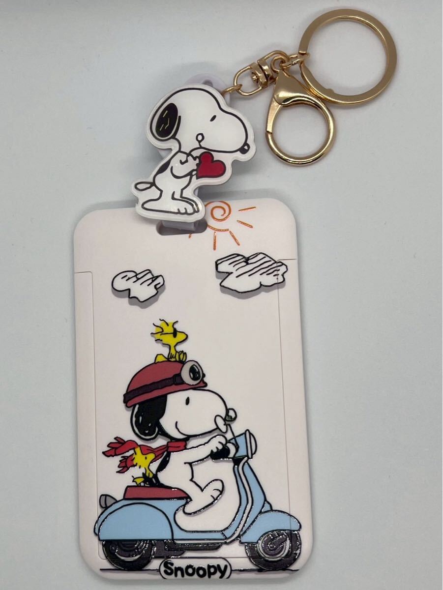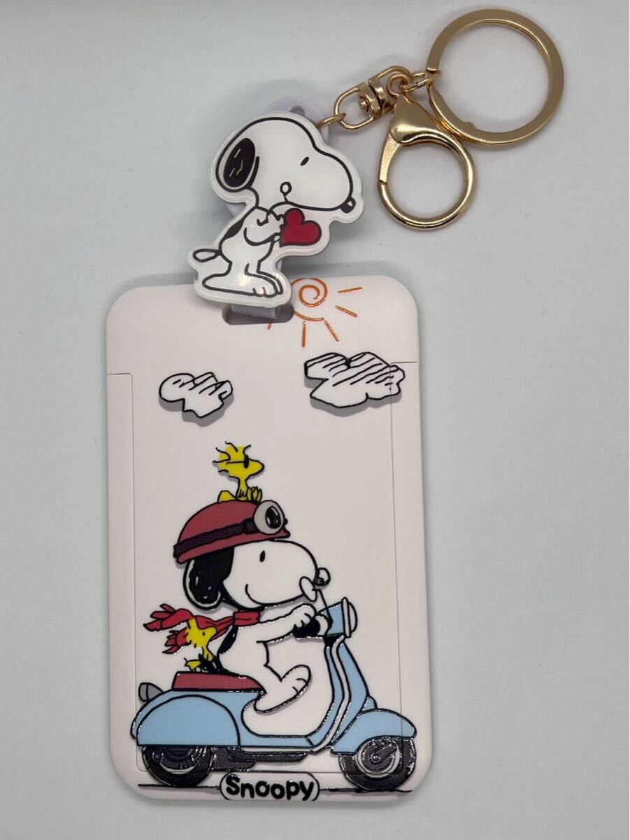 スヌーピーのイラストが可愛いパスケース、キーホルダー付きで便利。