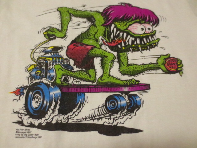 Rat Fink Shirts Mooneyes 1997 Art by Ed ” Big Daddy ” Roth ラットフィンク ムーンアイズ 半袖プリントティーシャツ S 白