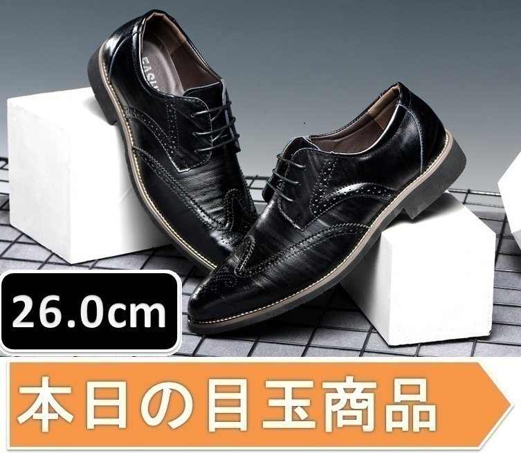 本日の目玉 ☆ メンズ ビジネス レザー シューズ ブラック サイズ 26.0cm 革靴 靴 カジュアル 屈曲性 通勤 軽量 【230】