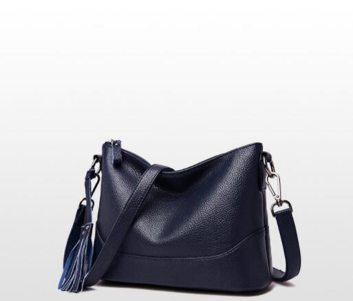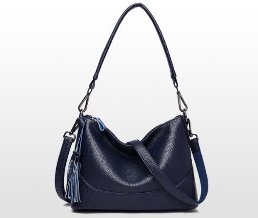 新入荷大人気本革 牛革 100%イタリアンレザー ブルー 2way ショルダーバッグ タッセル付き ハンドバッグ 斜めがけ