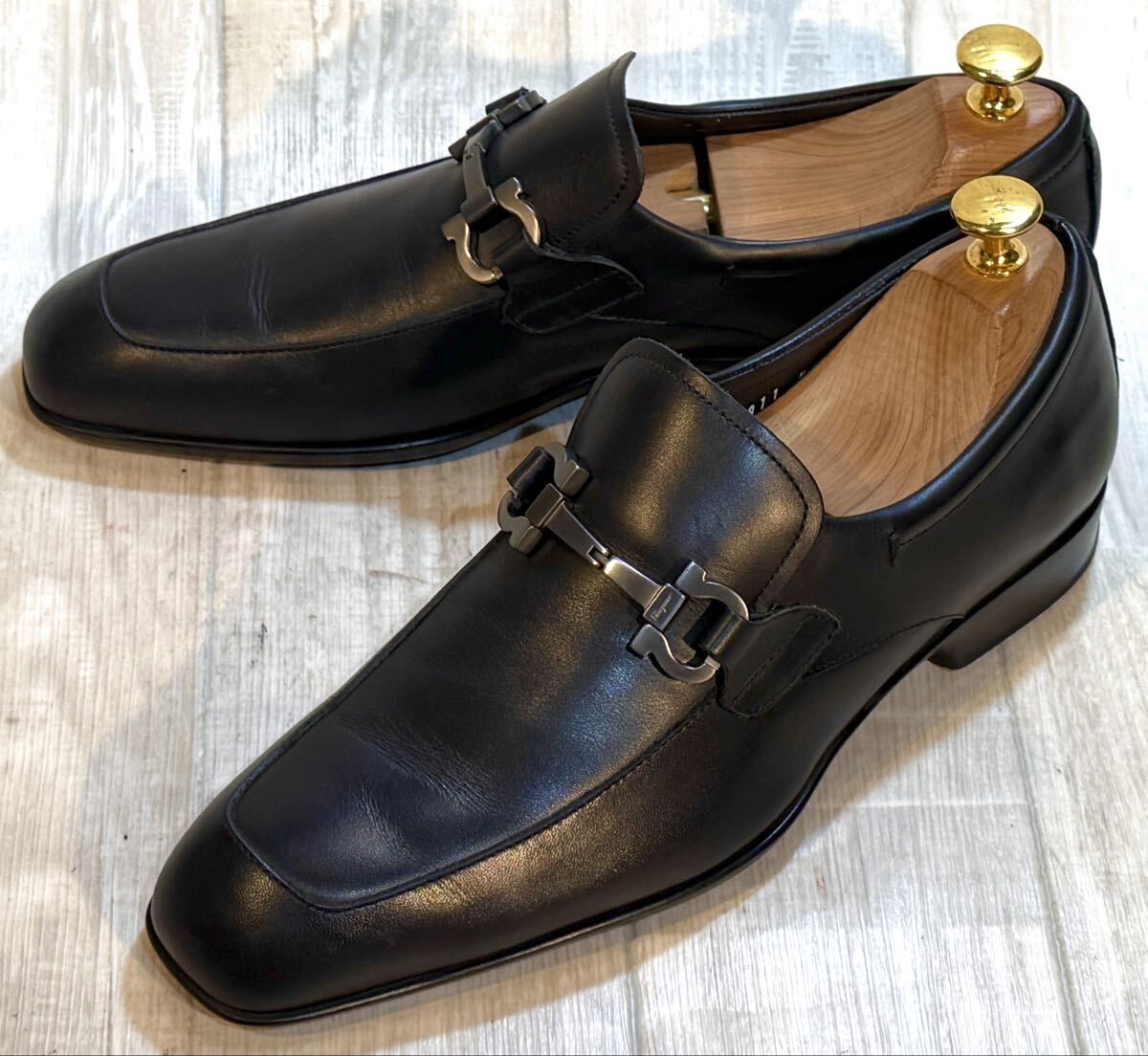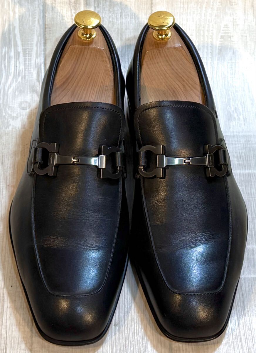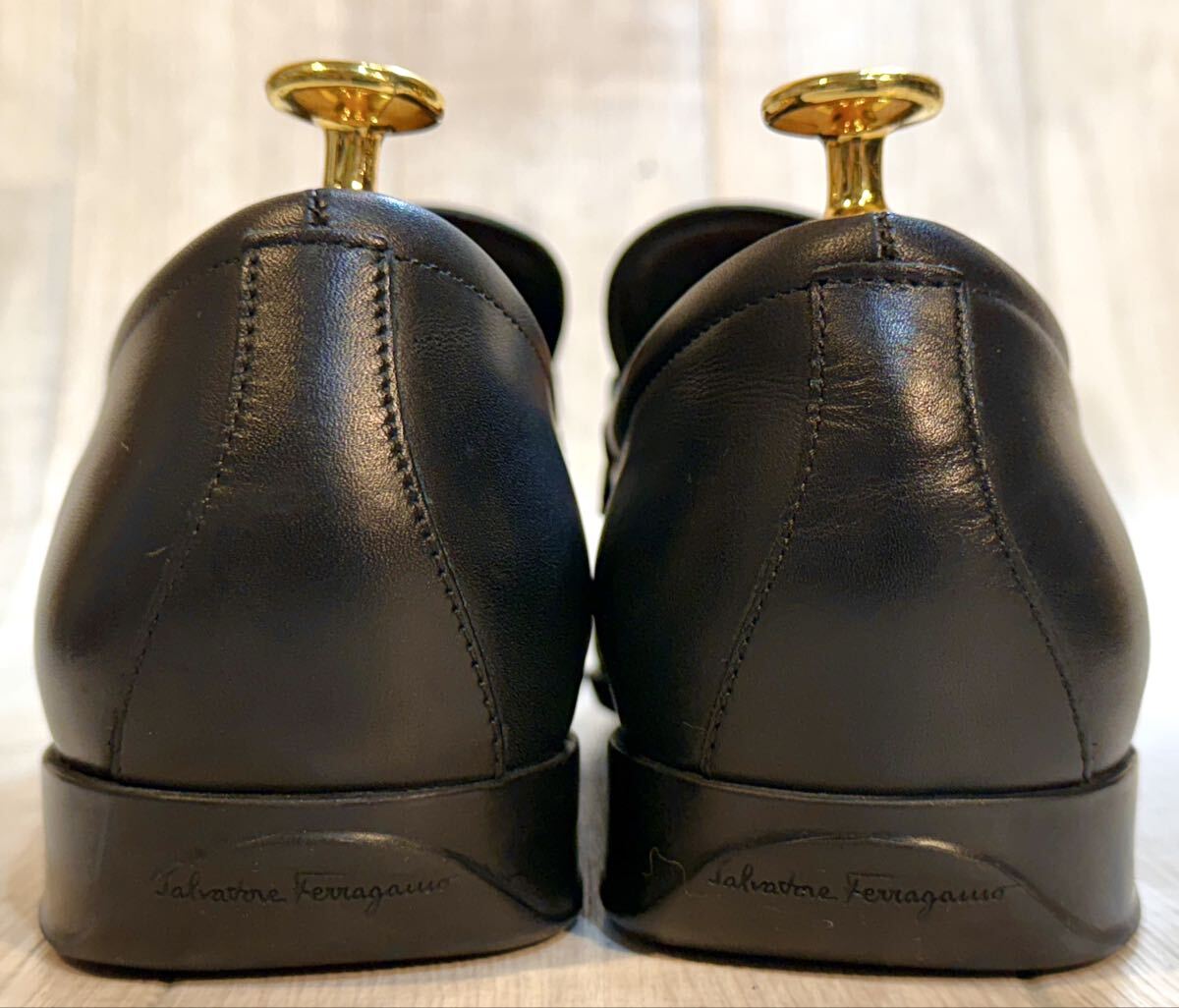 Salvatore Ferragamo フェラガモ◆24.5cm 7 D◆ガンチーニ モカシン 革靴 本革 ローファー ビジネスシューズ ドレスシューズ ITALY製 黒 靴