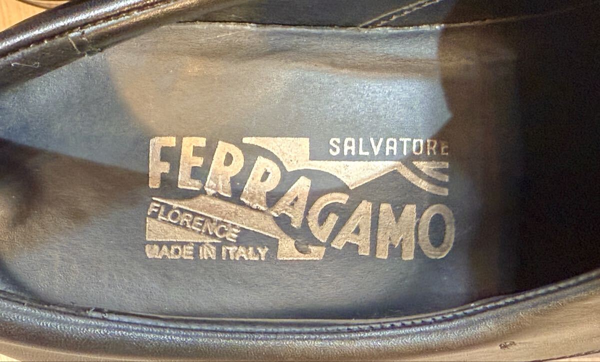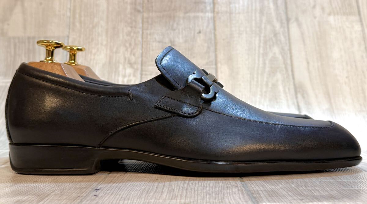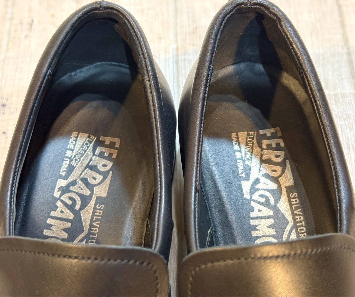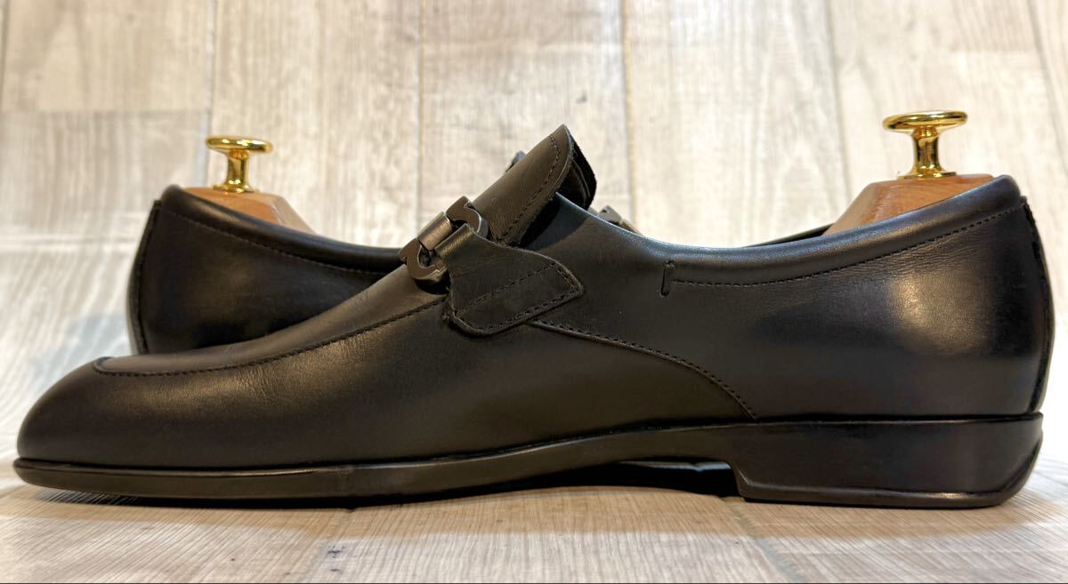 Salvatore Ferragamo フェラガモ◆24.5cm 7 D◆ガンチーニ モカシン 革靴 本革 ローファー ビジネスシューズ ドレスシューズ ITALY製 黒 靴