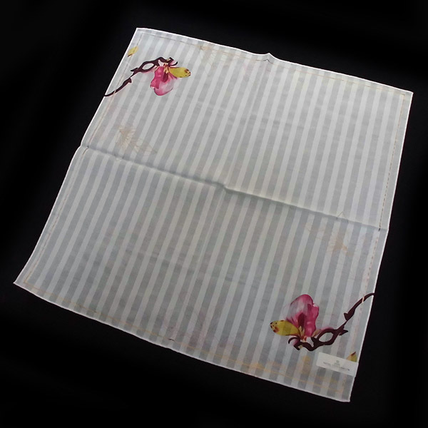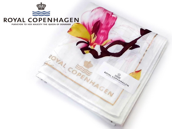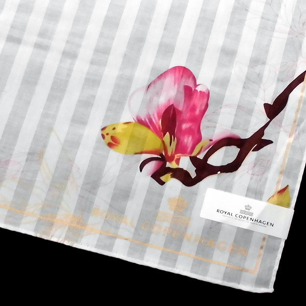 ●[15]ハンカチ ロイヤルコペンハーゲン 花柄 シャドーストライプ オフホワイト地 綿100% 50cm レディス