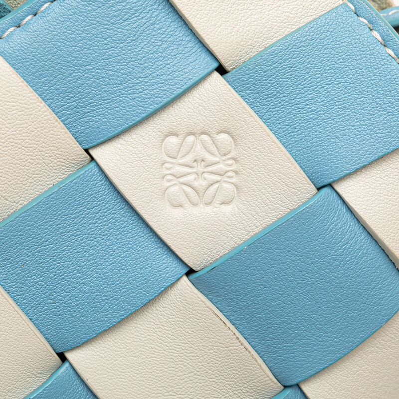 ロエベ アナグラム ウーブンバスケット ハンドバッグ ショルダーバッグ 2WAY ライトブルー ホワイト カーフレザー LOEWE 【中古】