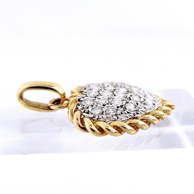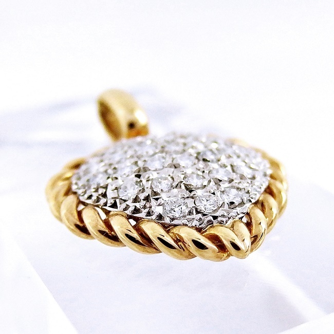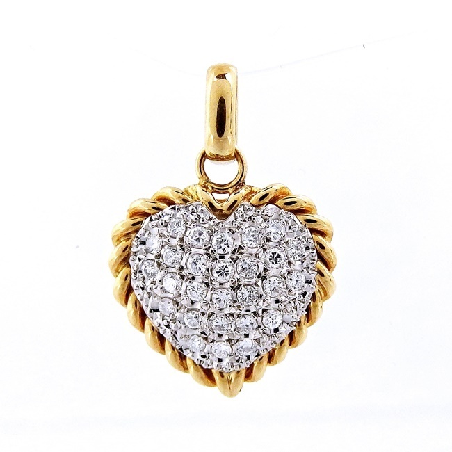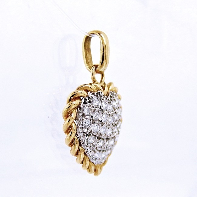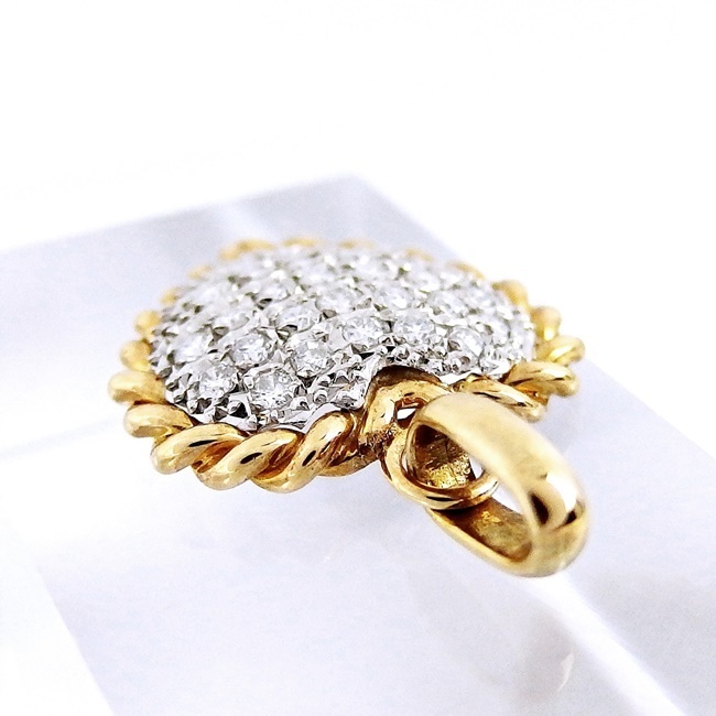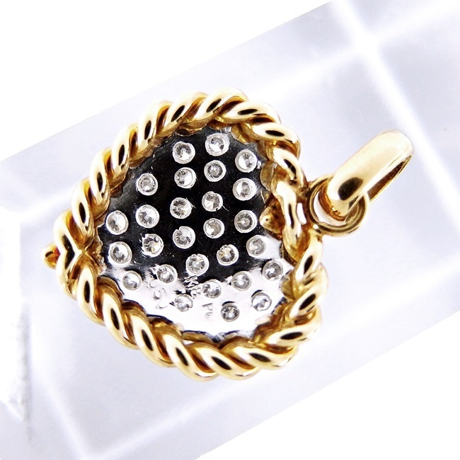 | *バイカラーハートのペンダントトップ *K18YG ×Pt *ダイヤ:0.50ct *トップの大きさ:約縦18mm×幅19mm *トップの厚み:最大約3.9mm *カンの内寸:約縦6mm×幅3.1mm *重さ:約5.4g *ランク:A ★カンにキズがあります。 (PND)19568