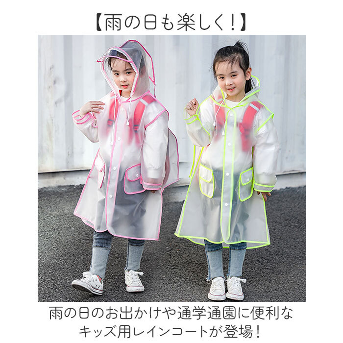 商品説明 | ・・【雨の日も楽しく!】 ・雨の日のお出かけや通学通園に便利なキッズ用レインコートが登場! ・【リュックを背負ったままでもOK】 ・コートの背中部分には、リュックやランドセルを背負ったまま着用できる背マチ付き。 ・【小さな子でも着脱簡単】 ・小さなお子様でも脱ぎ着がしやすい、スナップボタン仕様。 ・【前が見やすい透明窓付き】 ・フードのツバ部分には透明窓が付いているので、視界を遮る心配なし! ・【便利なポケット】 ・両サイドにはミニタオルなどが入れられるスナップボタン付きのポケットを配置。 ・【キュートなデザイン】 ・フードについたタッセルやパイピングがアクセント。コートと同じパイピングデザインの収納袋付き。 ・【選べるサイズ展開】 ・男の子も女の子も着られるLサイズからXXLサイズまで、ピッタリサイズがチョイス可能♪ |