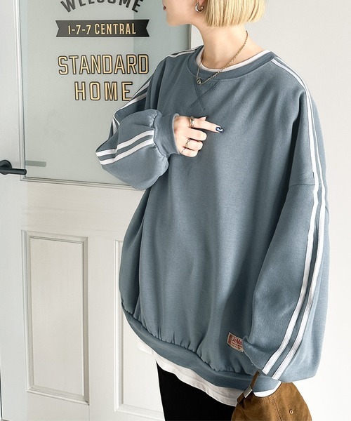 参考商品名:《JaVa ジャバコラボ》レトロ×スポーツMIX。袖ダブルライン裏起毛スウェットプルオーバー