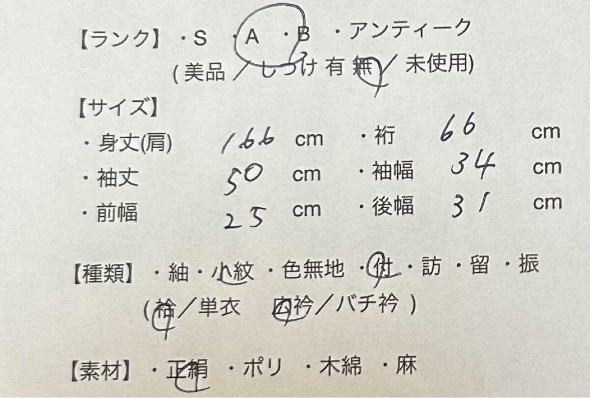 【A〜B】【S】新品または未使用品。 【A】中古品ですが、状態が良く、とても美品。 【B】多少の汚れはある。中古品としては状態がよく着用可能。 【C】汚れやシミがある並品で、着用可能かの判断は個人差がある。 【D】汚れやダメージが目立ち、着用はできない。リメイク用の品。 【E】アンティーク ※状態は様々です。 コメント欄やお写真で詳細をお確かめ下さい。 ランクの判断基準は当社の査定によるものです。 見落としがある場合もありますし、個人の見解も様々ですので、ご不安な点は必ずご入札前にご質問下さい。 写真に映らないような小さいシミは、写真や記載にもない場合があります。 |