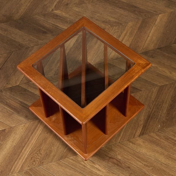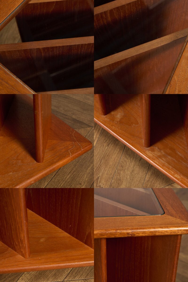 チーク材を使用した、デンマークヴィンテージ マガジンラック付き コーヒーテーブルです。 天板下にマガジンラックを備えた、洗練されたデザインが印象的。実用的でありながら美しく、作り手のこだわりを感じさせる北欧家具黄金期のヴィンテージファニチャーです。 |
