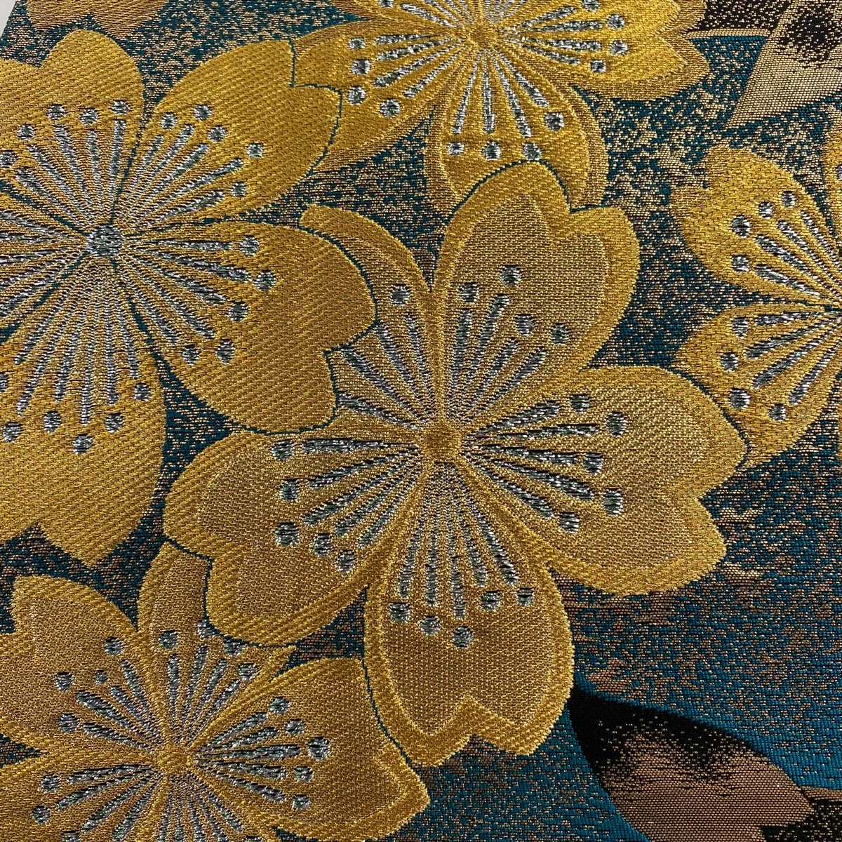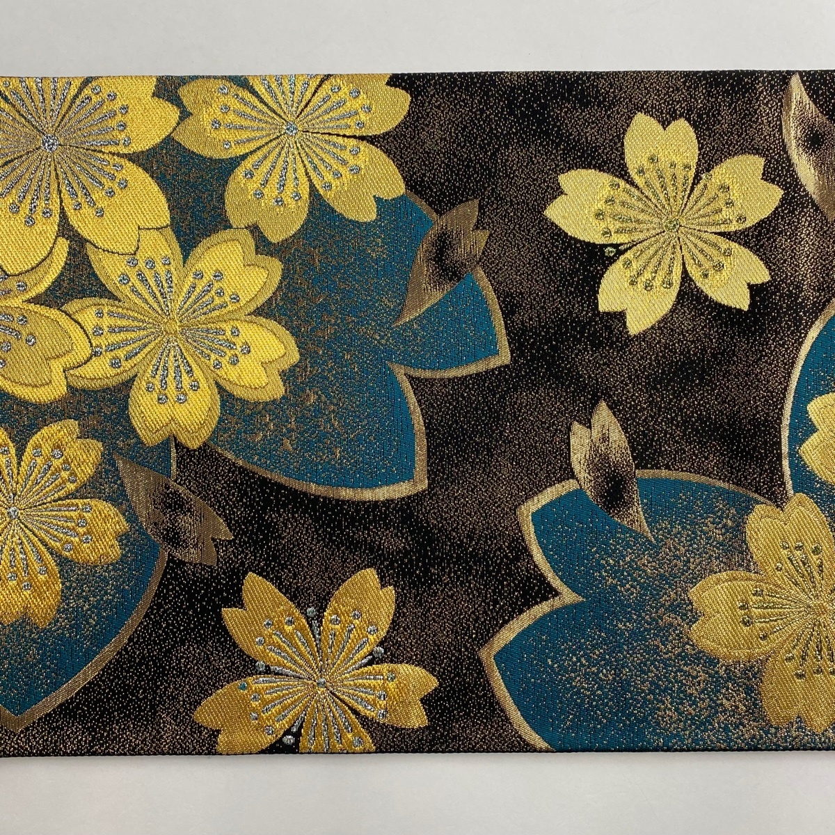 | 袋帯 美品 秀品 桜 花びら 金糸 箔 金茶 全通 正絹 【中古】 |