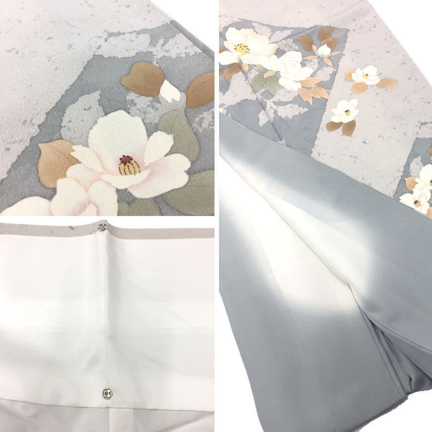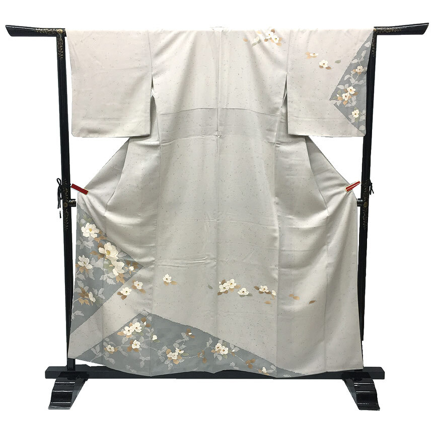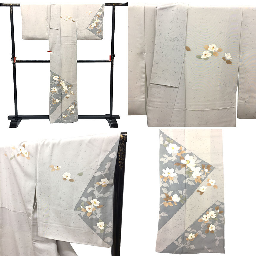 | 商品名 | 京やB096 特選 正絹 訪問着 蒔き糊散らし 牡丹 椿 白鼠色 空色鼠 ちりめん フォーマルからカジュアル 袷仕立て 仕立て上がり 未使用 新古品 美品 KIMONO 着物 |