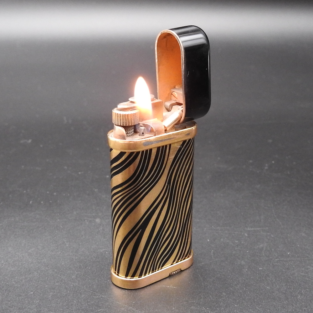 【着火確認済み】Cartier カルティエ ゴドロン ゼブラ ゴールド/ブラック ローラー式 ガスライター 希少品