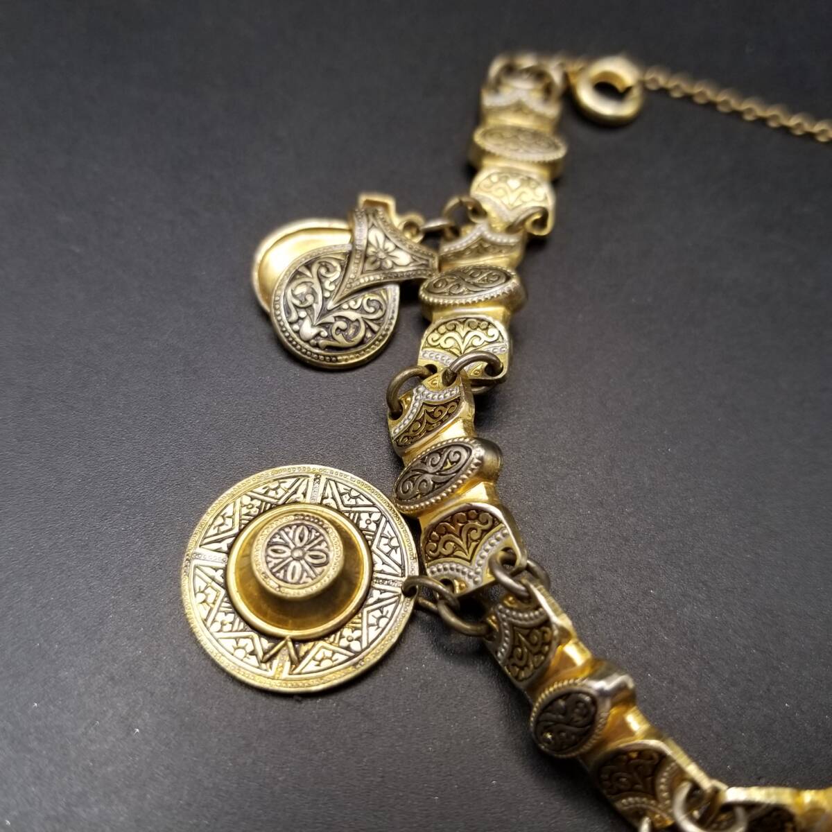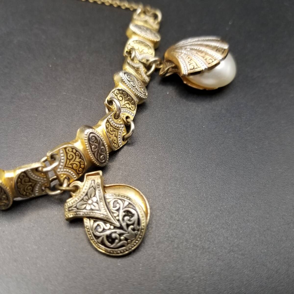 ダマシン スパニッシュチャーム 装飾 ヴィンテージ ブレスレット ゴールドトーン 象嵌 ゴージャス 貝 カスタネット コスチュームジュエリー Y24-B