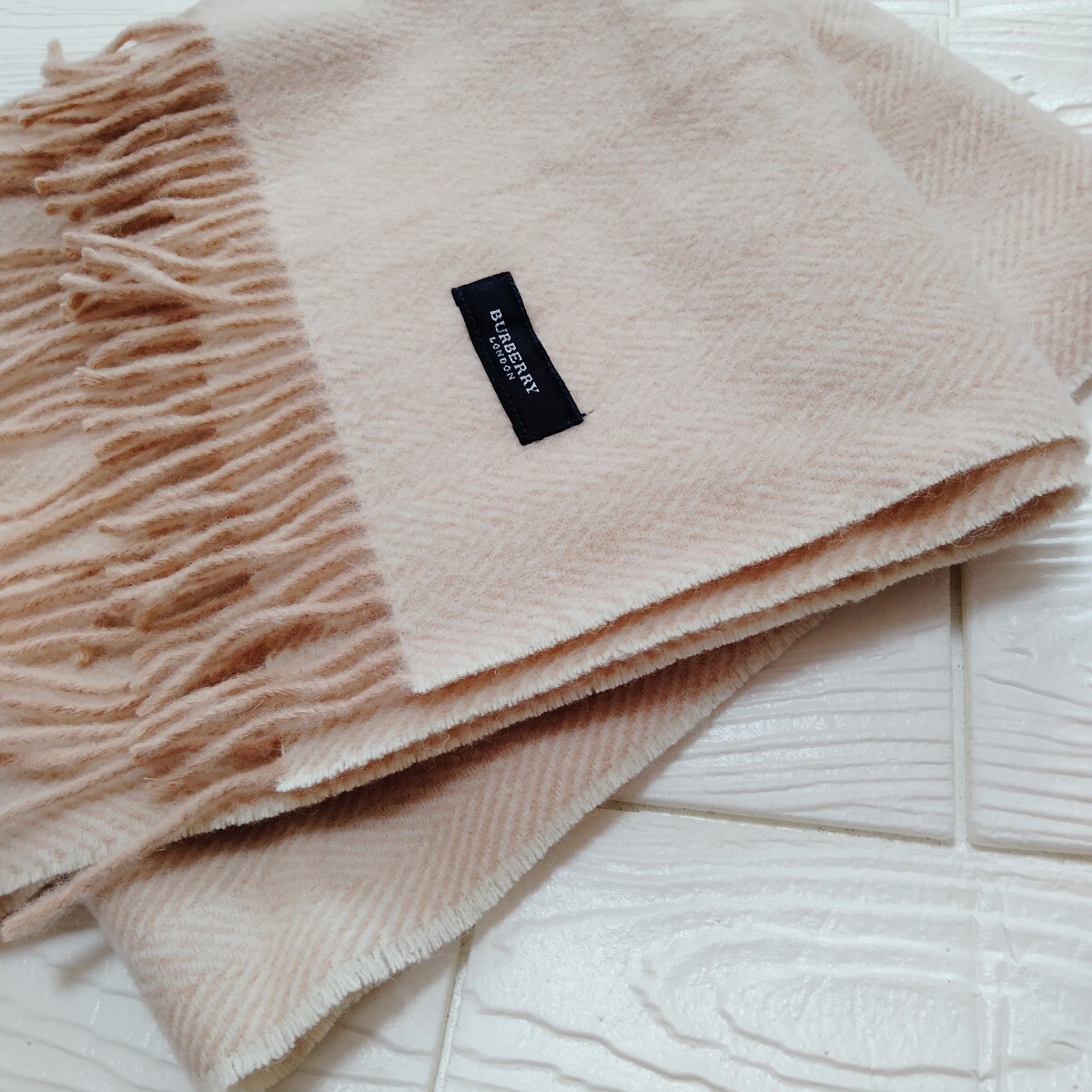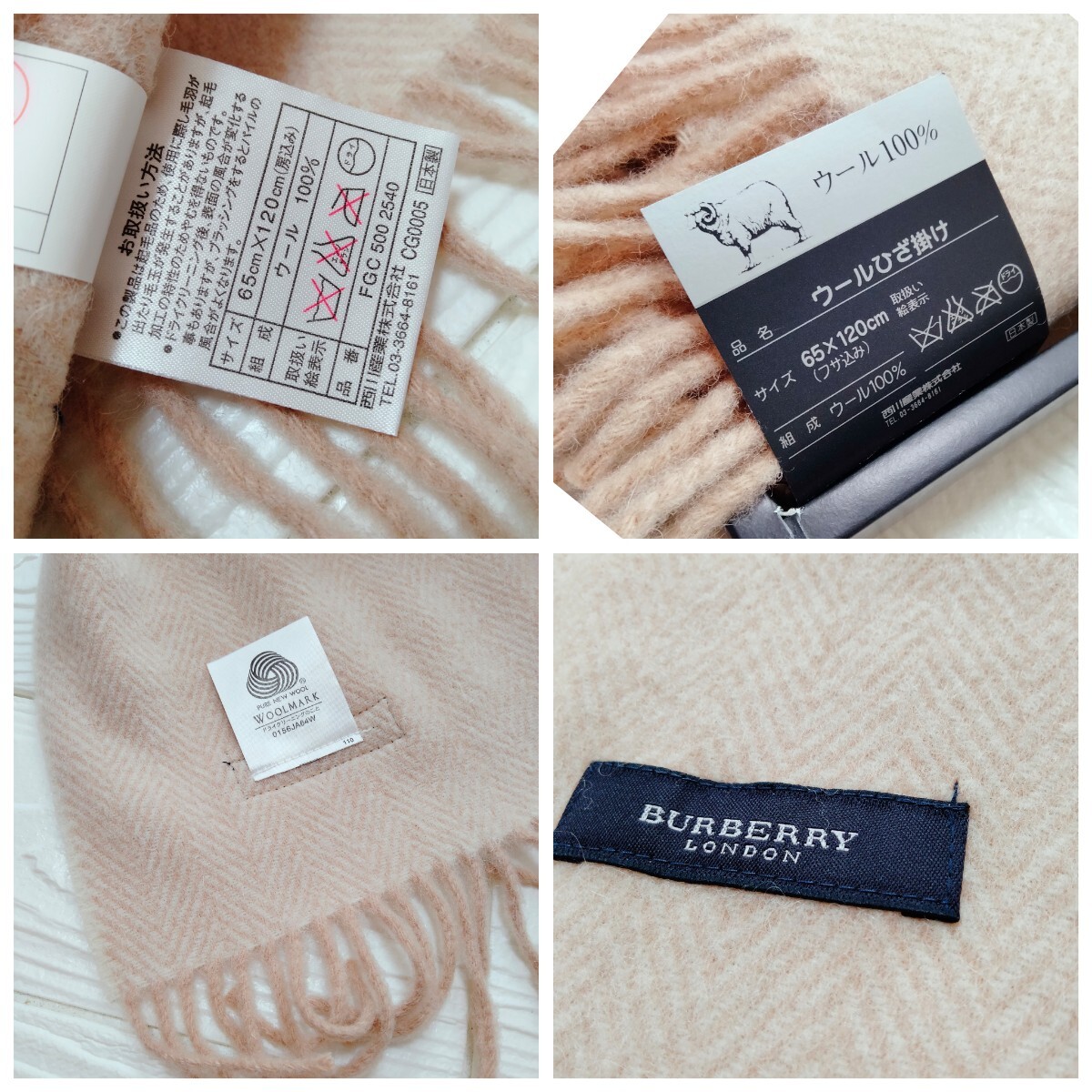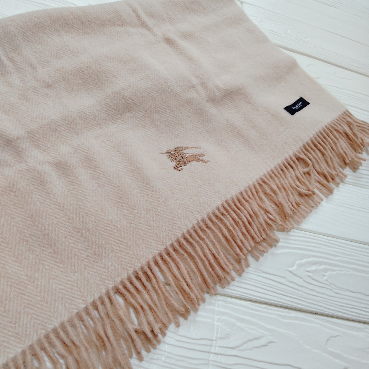 未使用*Burberry London*バーバリーロンドン*ひざ掛け*ヘリンボーン柄*ベージュ*ウール100%*65×120*日本製*西川産業*温活*防寒*ストール