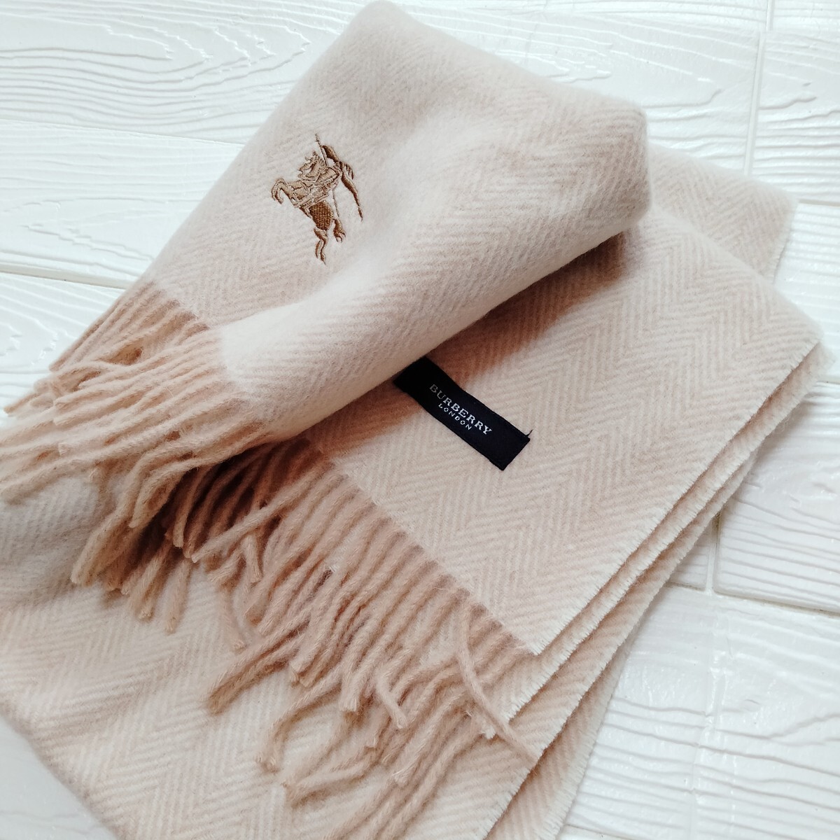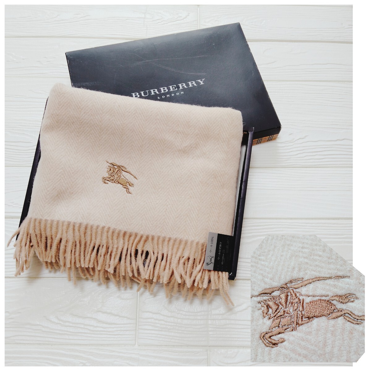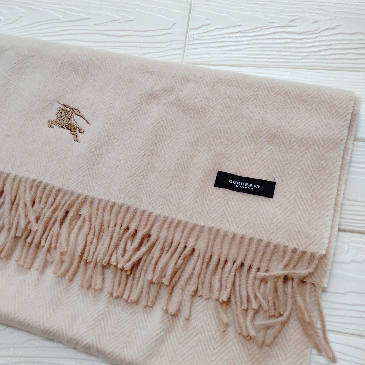 未使用*Burberry London*バーバリーロンドン*ひざ掛け*ヘリンボーン柄*ベージュ*ウール100%*65×120*日本製*西川産業*温活*防寒*ストール