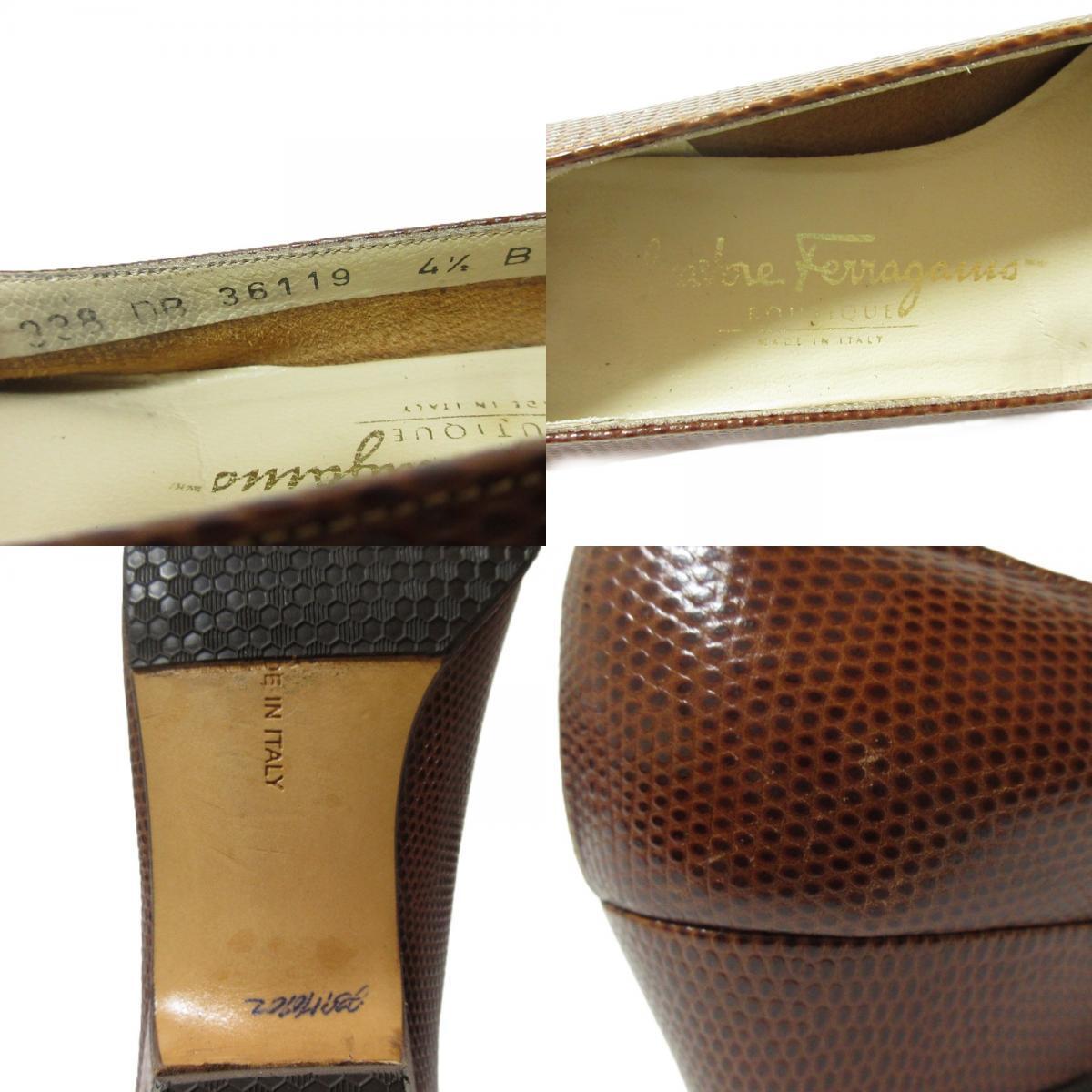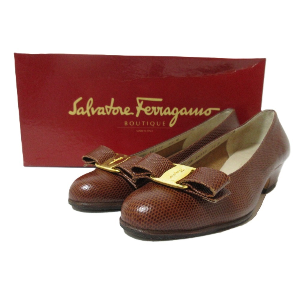 商品名:Salvatore Ferragamo サルヴァトーレフェラガモ ヴァラリボン レザー リザード型押し パンプス サイズ4 1/2 約22cm ブラウン