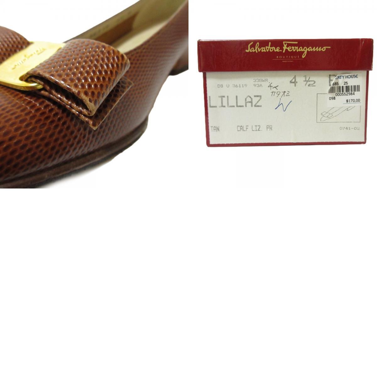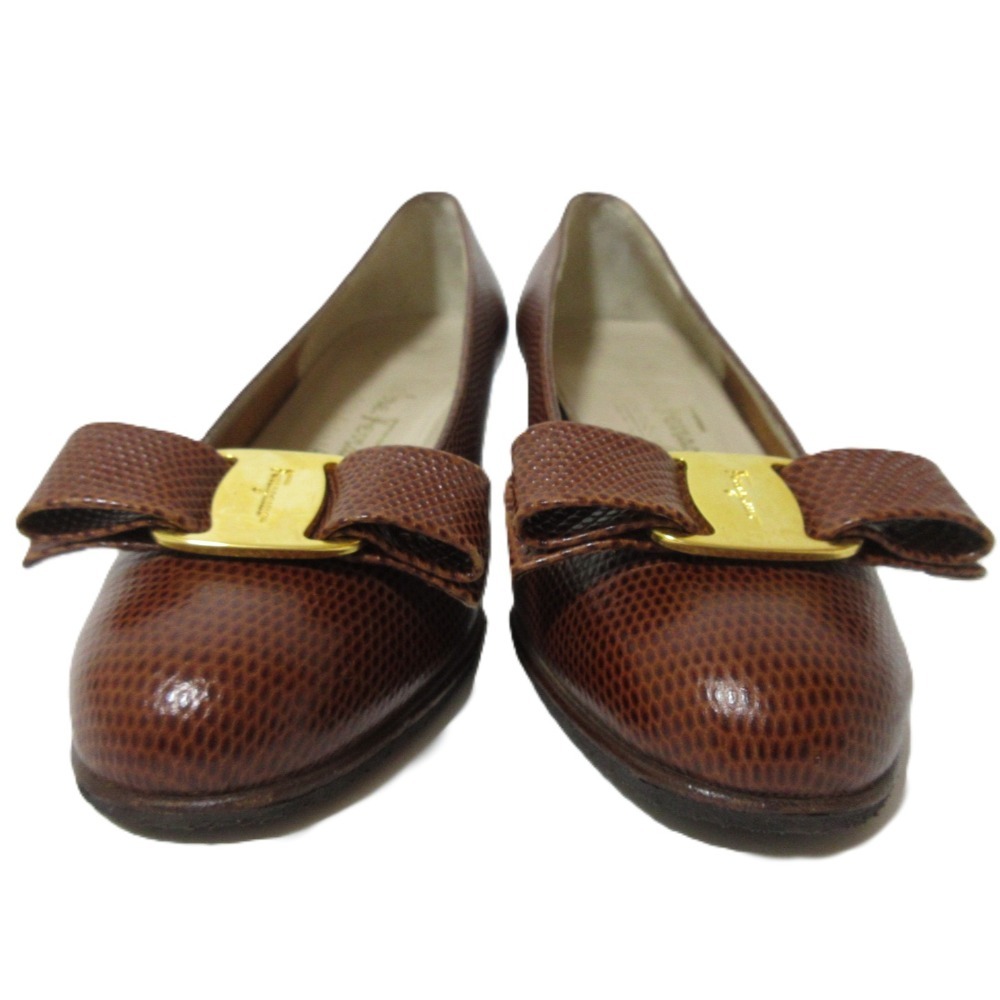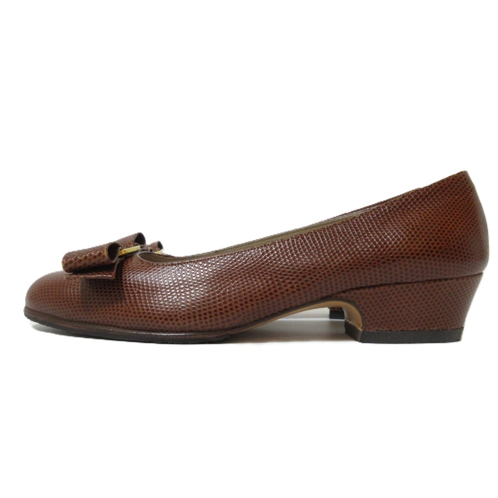 美品 Salvatore Ferragamo サルヴァトーレフェラガモ ヴァラリボン レザー リザード型押し パンプス サイズ4 1/2 約22cm ブラウン