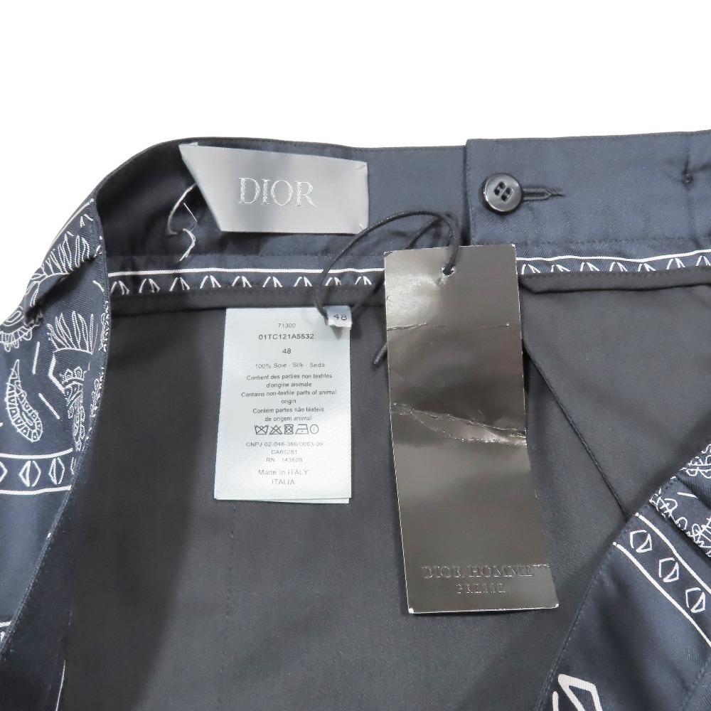 未使用 20ss DIOR ディオール シルク ペイズリー柄 ショートパンツ CDダイアモンド ロゴ 総柄 ショーツ 48 ネイビー