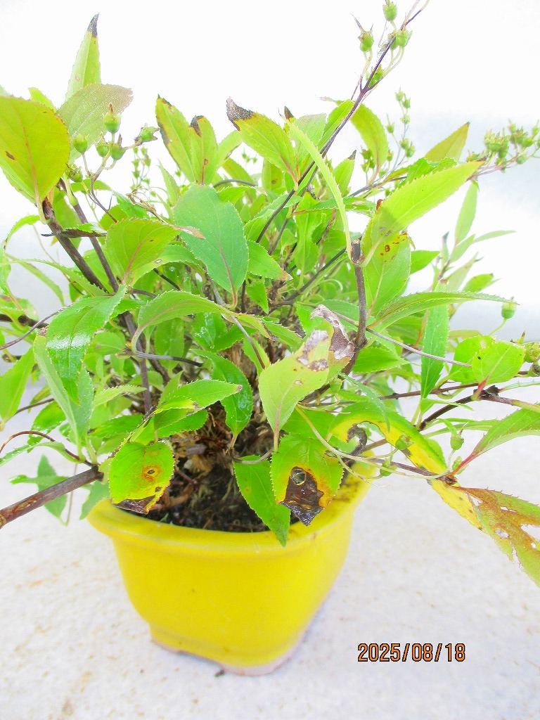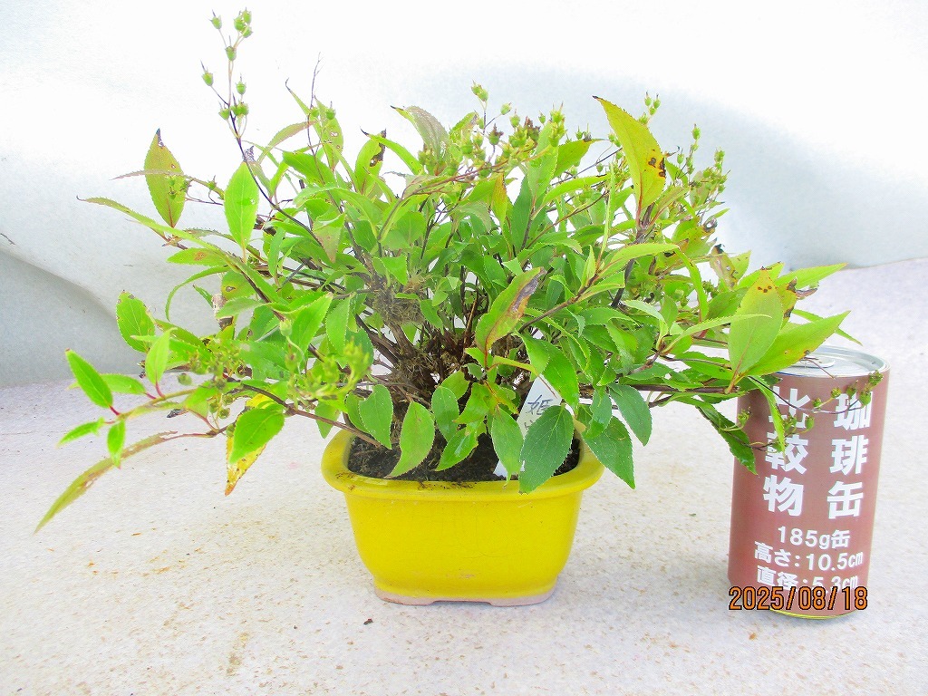 [讃岐屋緑兵衛]姫空木 葉灼け(8528黄釉正方鉢)全高:25㎝※同梱包は「まとめて取引」手続厳守※送料明記*説明必読 *「まとめて取引」手続きされていない場合は同梱包できません。 *同梱包ご希望の際は追加送料発生します* *同梱包は、[讃岐屋緑兵衛]のタイトル商品に限ります。類似画像の他ID出品にご注意ください。 単品(セット品は1組)発送ご希望の際は「まとめて取引」の手続きをしないでください。入札前に必ず下記の「発送方法」に記載の送料を確認してください。 ■ヤフオクの取引においてメッセージは特に必要ありません。挨拶などを省略できる取引システムですし取引ナビの案内で進行状況が判るので都度の連絡は不要です。配送日時指定や連絡事項のみお知らせ下さい。双方合理的に進めましょう。また、お急ぎの方は入札をご遠慮ください。業務時間内のでの対応になります。 ■寸法は鉢を含む全高です。 一緒に撮影しているスケールまたは比較物をご参照ください。 珈琲缶は高さ約10㎝、直径約5㎝です。 500mlペットボトルは高さ約21㎝です。 ■画像の様子から経時変化しますので撮影日(画像記載)からの変化はご了承下さい。 *花物・実物は特にご注意下さい。画像(撮影時)では開花品でも、お届け時は花終わりを想定して下さい。 ◎落札が無い場合は、自動再出品が継続されます。 撮影から2か月経過した場合、どんどん開始価格が下がりますが、商品の劣化も進みますので、 撮影日からの期間経過品はある程度の劣化を想定で入札にご参加下さい。 商品により90日間程度(物によりそれ以上)同じ画像を使用しますので、必ず撮影日をご確認下さい。 ■当方、ここでの出品以外にも大量に在庫しています。 そのため、枯れなどのダメージが梱包時までに気づかない場合もあります。 その際、双方無条件でのキャンセルをご了解下さい。 |