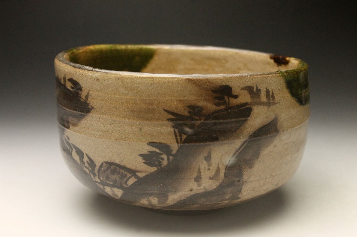 【余韻】 江戸時代前~中期 【尾形乾山】作 山水文 茶碗★時代物 茶道具<同梱可>