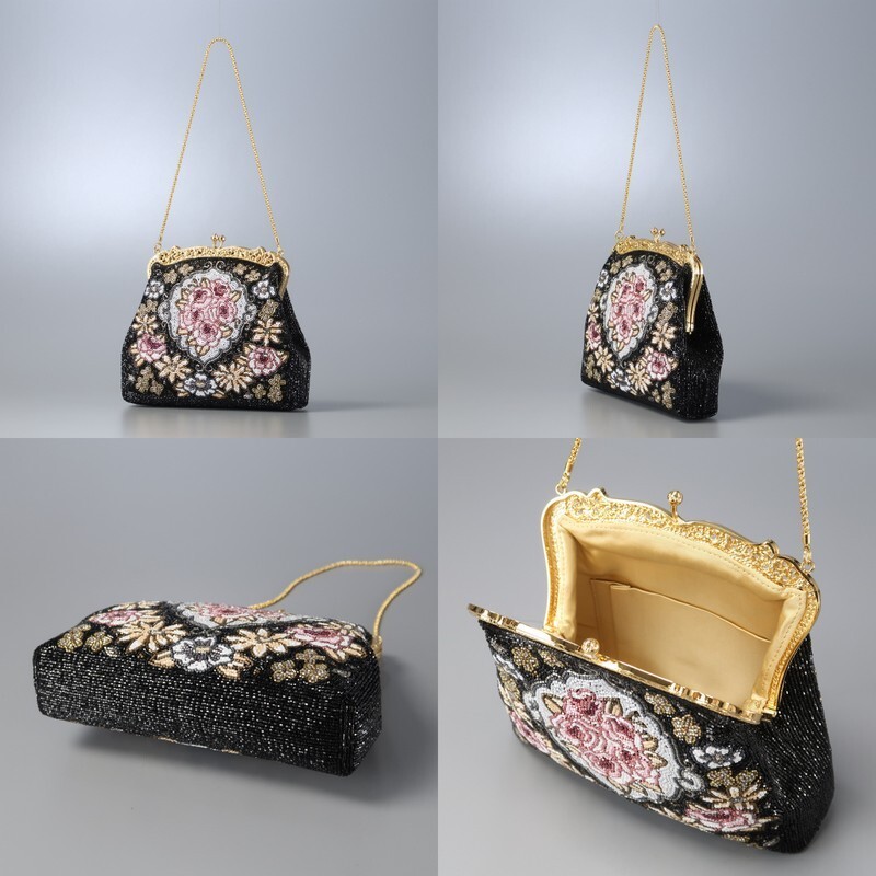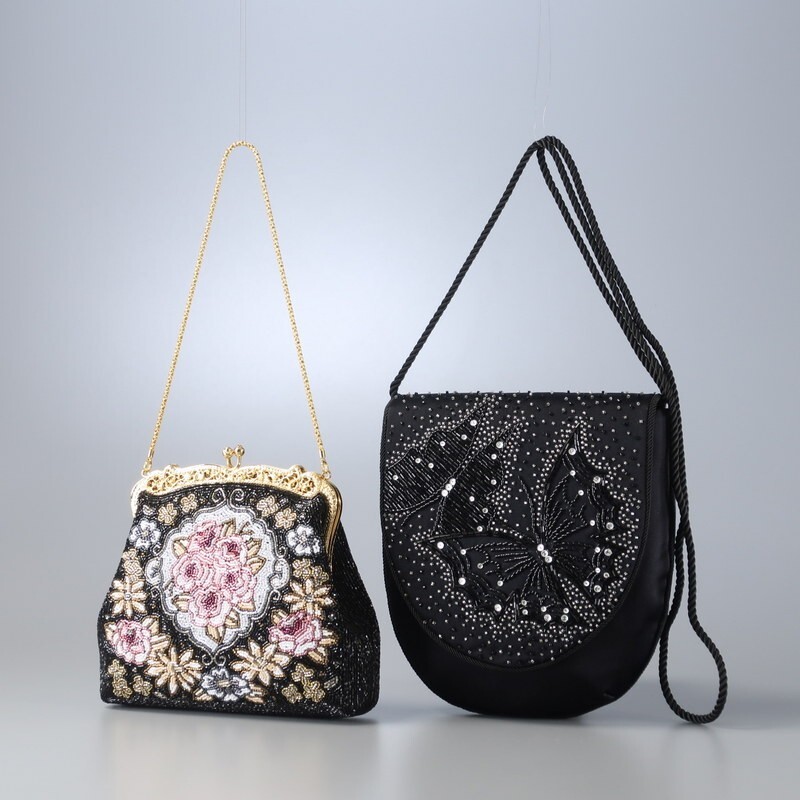 MH9949■2点セット HANAE MORI ハナエモリ 含む ビーズバッグ ハンドバッグ ショルダーバッグ チェーンバッグ 鞄 フラップ がま口 ブラック | |||