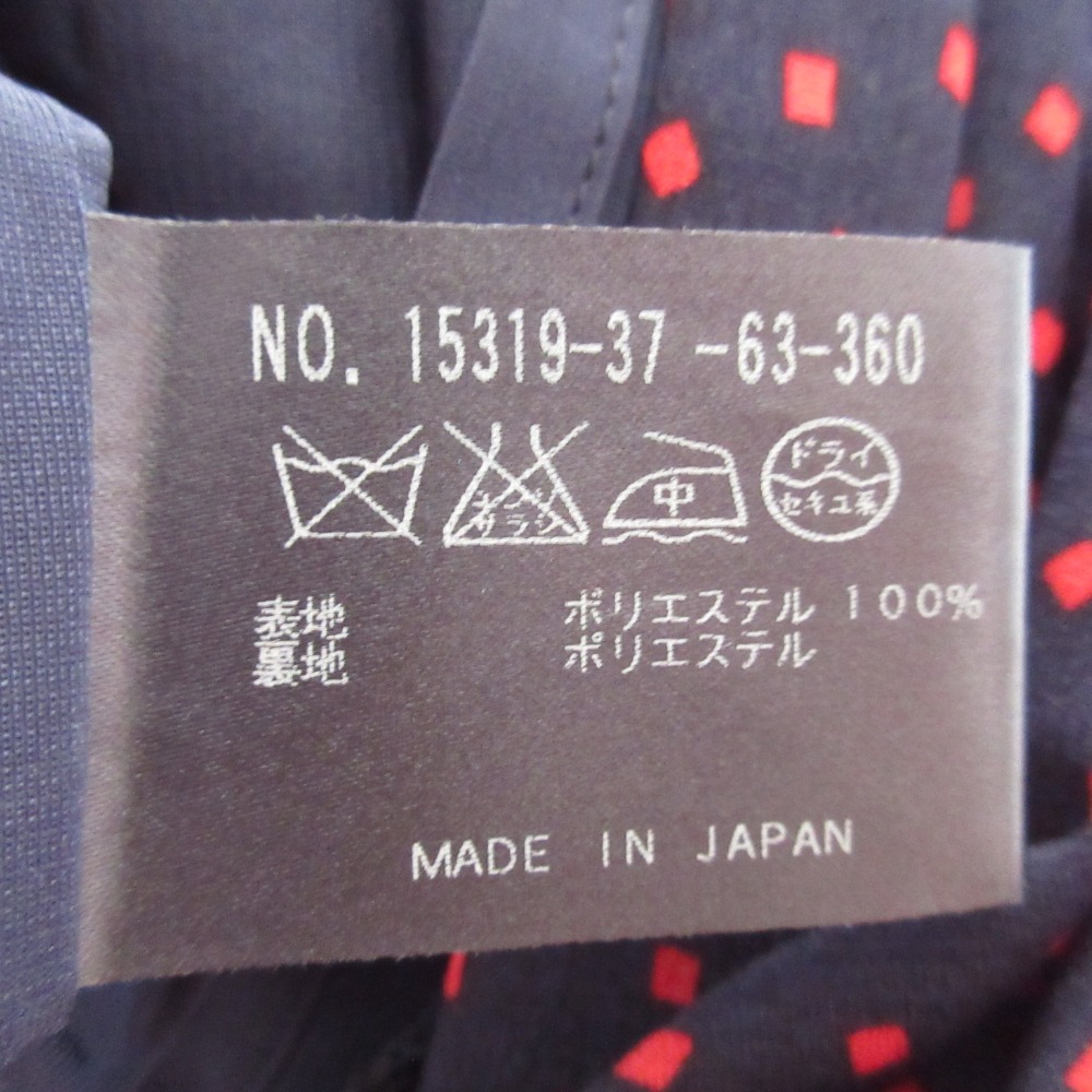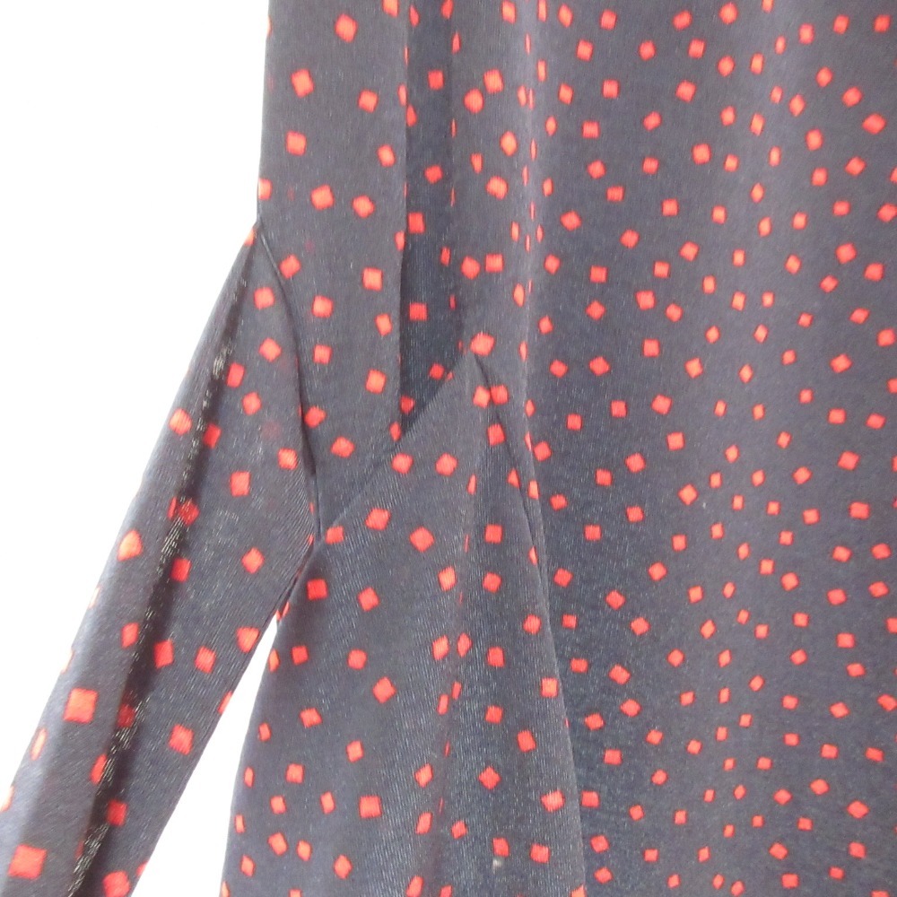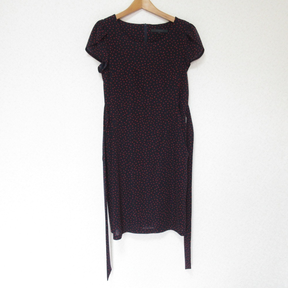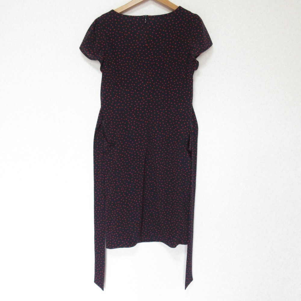 商品名:ANAYI アナイ スクエアドット柄 フレンチスリーブ ひざ丈 ベルテッド ワンピース 36 ネイビー