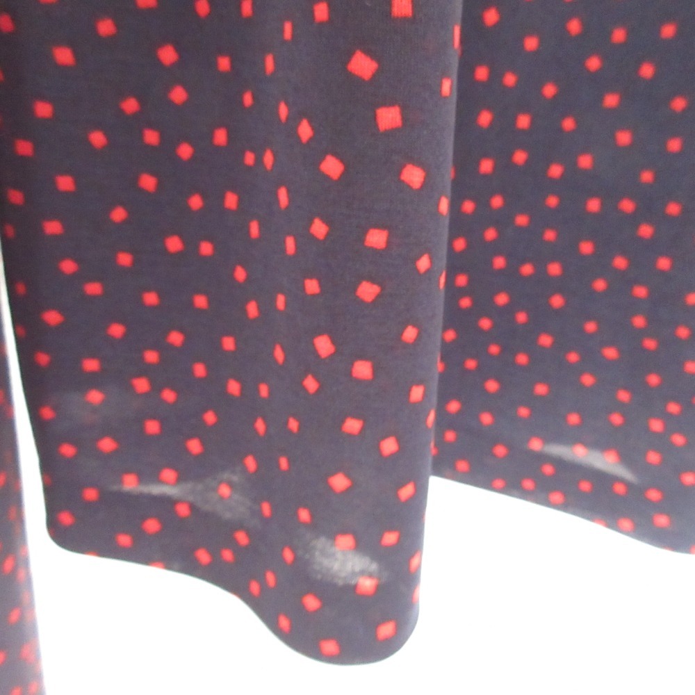 美品 ANAYI アナイ スクエアドット柄 フレンチスリーブ ひざ丈 ベルテッド ワンピース 36 ネイビー