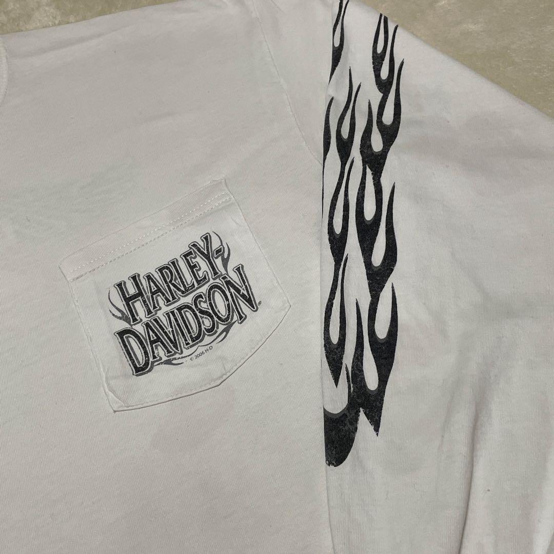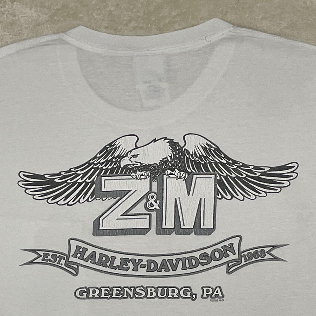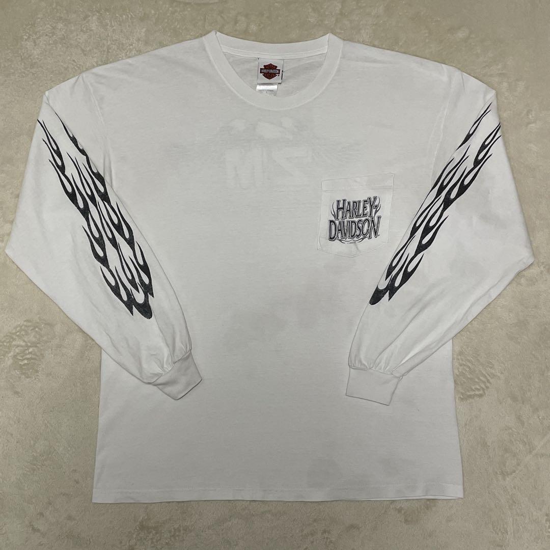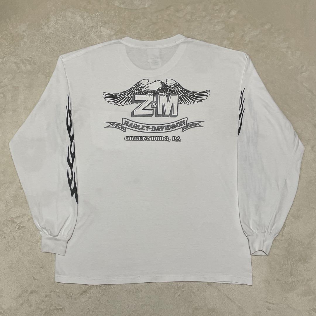 表裏 袖 の四面プリントで イーグル フレイム 両方が入りあれば大変嬉しいポケT仕様のハーレーダビッドソンロンTです。