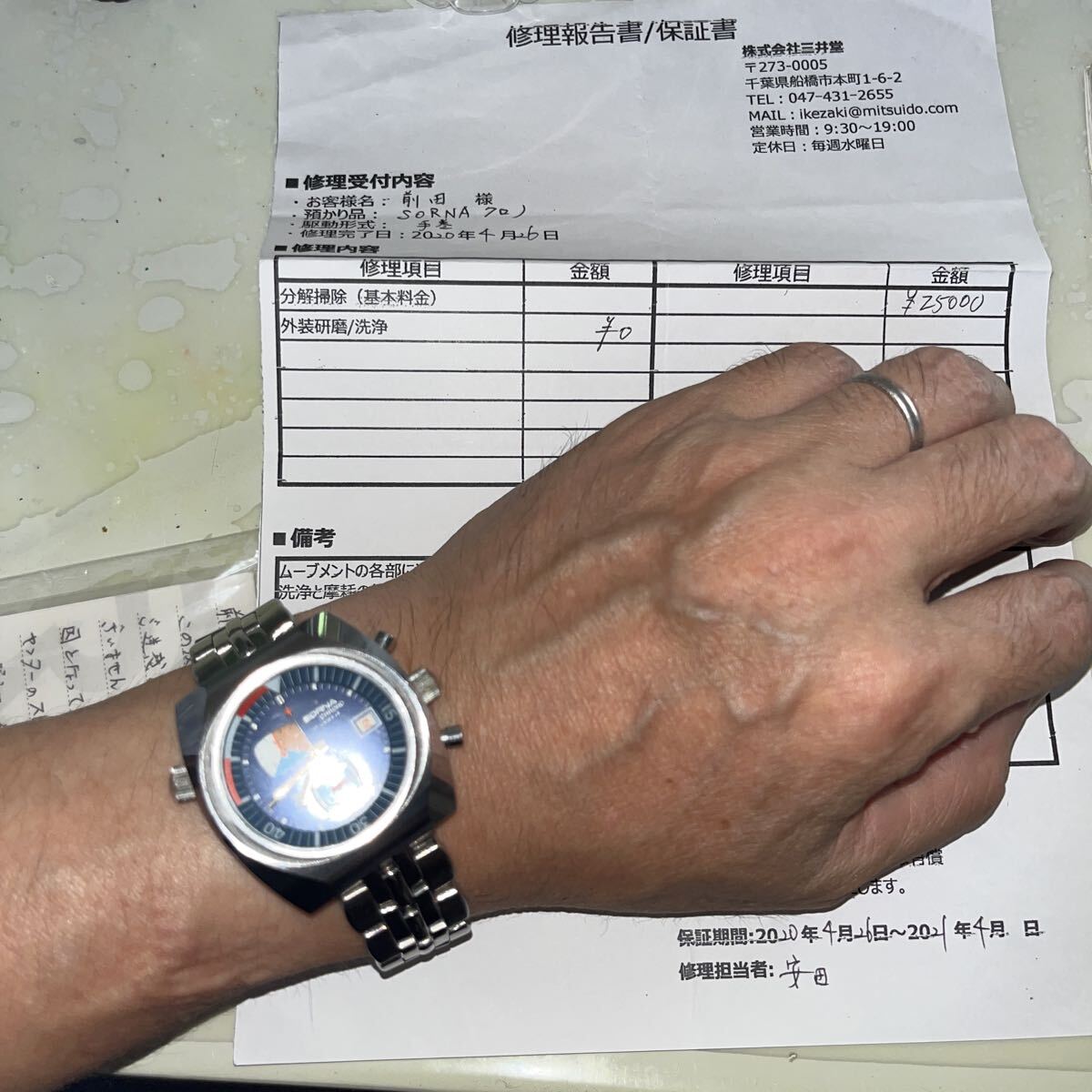 2020年にオーバーホールしています。多少の時間のズレはありますが1960年代品であれば当たり前のレベルかと。日差1〜2分です。もともと非防水ですが、水道修理用テープを溝に詰めております。日本の梅雨時の水分侵入はありませんでしたが、水仕事やつけたままでの水泳などは無理です。