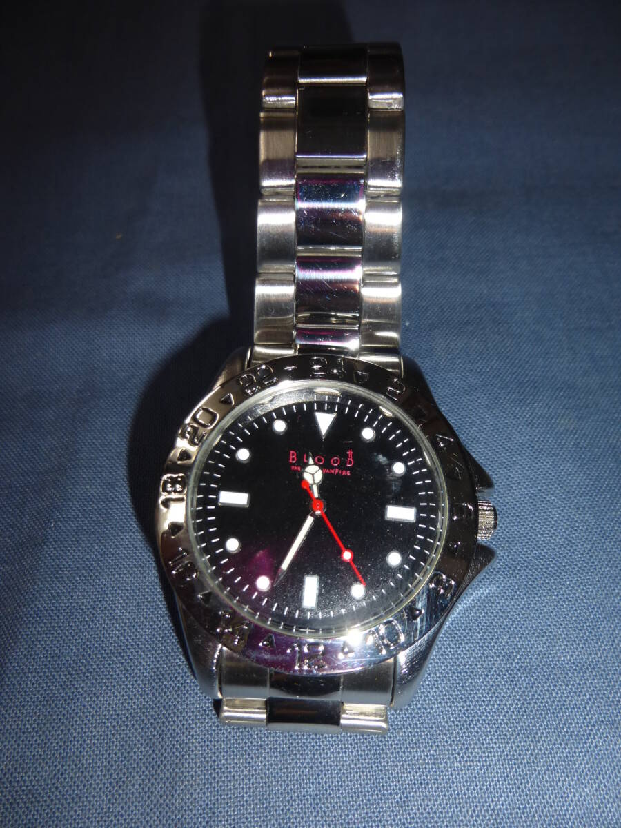 | 60/BLOOD THE LAST VAMPIRE 腕時計 アナログクォーツ時計 2001年 動作 電池切れ 動作確認なし 腕輪部分直径約7cm弱(留めた状態でのサイズ) 盤面直径約3.9cm 状態:本体は未使用ですが、長期保管品の為、電池が切れています。動作確認は行なっておりませんのでご了承の上ご入札お願い致します。 経年保管の為、プラスチックケースにキズ、ヨゴレなどあり。 ◆商品は未使用・新品と記載のないもの以外は全て中古品になります。また下記発送・お支払い方法を必ずご参照の上、ご入札お願い致します。佐川急便(宅配便)以外での発送は対応しかねますのでご了承のほどお願い致します◆ |