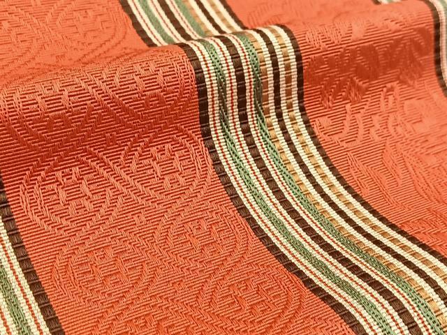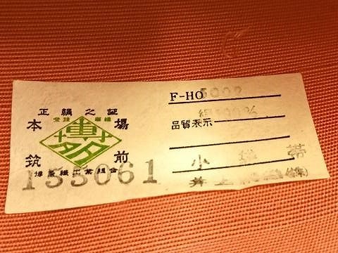 【正絹】 詳細に関しましては、画像をご確認ください。 本場筑前博多織は、 福岡県福岡市博多区やその周辺で生産される絹織物です。 仏具のひとつである独鈷、華皿を基にした幾何学模様が織られています。 江戸時代に筑前藩主だった黒田長政が幕府への献上品にしたことから、 博多献上、献上博多とも呼ばれます。 横畝が際立って見える経畝織りという織りになっています。 30〜60本の細い経糸を使うため、こしやはりがあり、 地合が硬く、光沢感があります。 きちんと締まり、くずれにくい、締めやすい帯といわれています。 大変上質な逸品になります。 お安く出品致しますので、是非この機会にいかがでしょうか? ※両側未かがりですが着用には問題ありません。 |